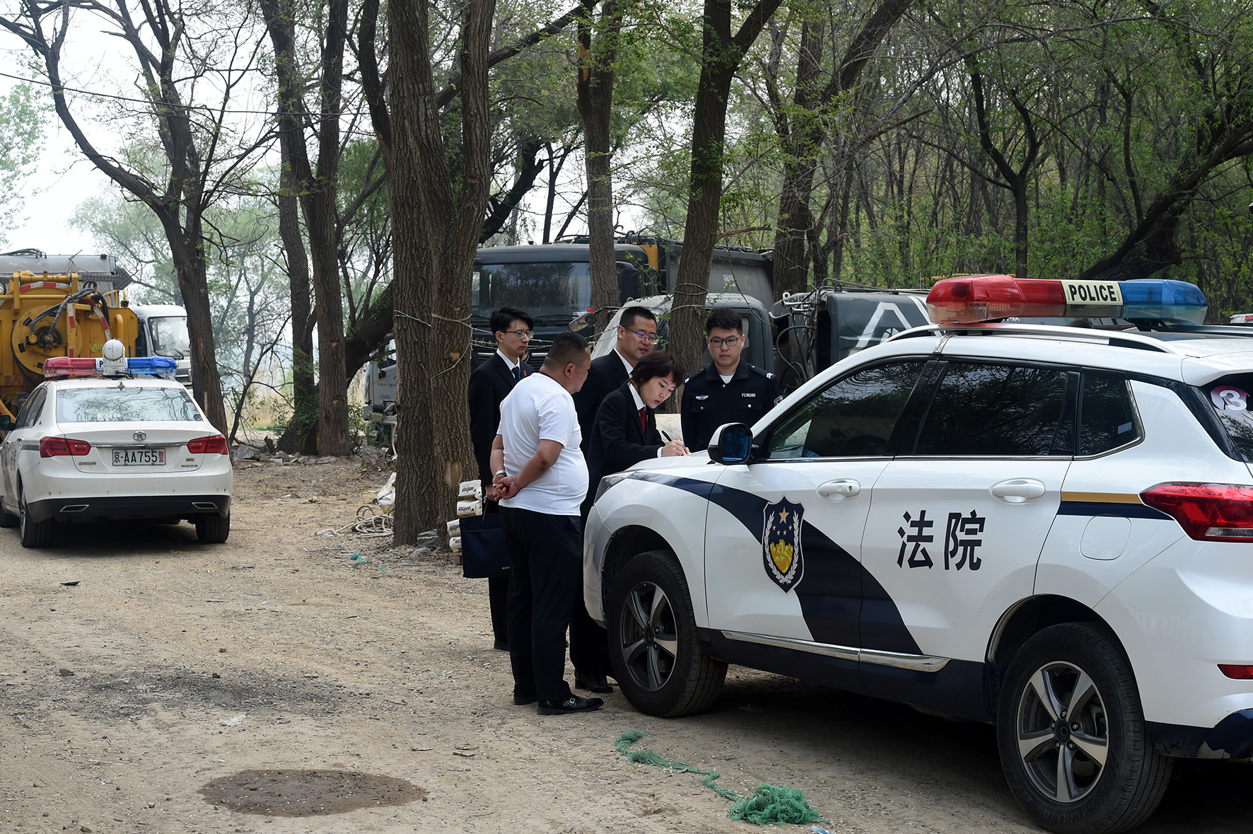4月22日,北京市第三中級(jí)人民法院、河北省隆化縣人民法院的執(zhí)行法官與當(dāng)事人在北京市昌平區(qū)大湯山村一處停車場(chǎng)內(nèi),現(xiàn)場(chǎng)對(duì)三輛涉案扣押車輛辦理轉(zhuǎn)移交接手續(xù)。