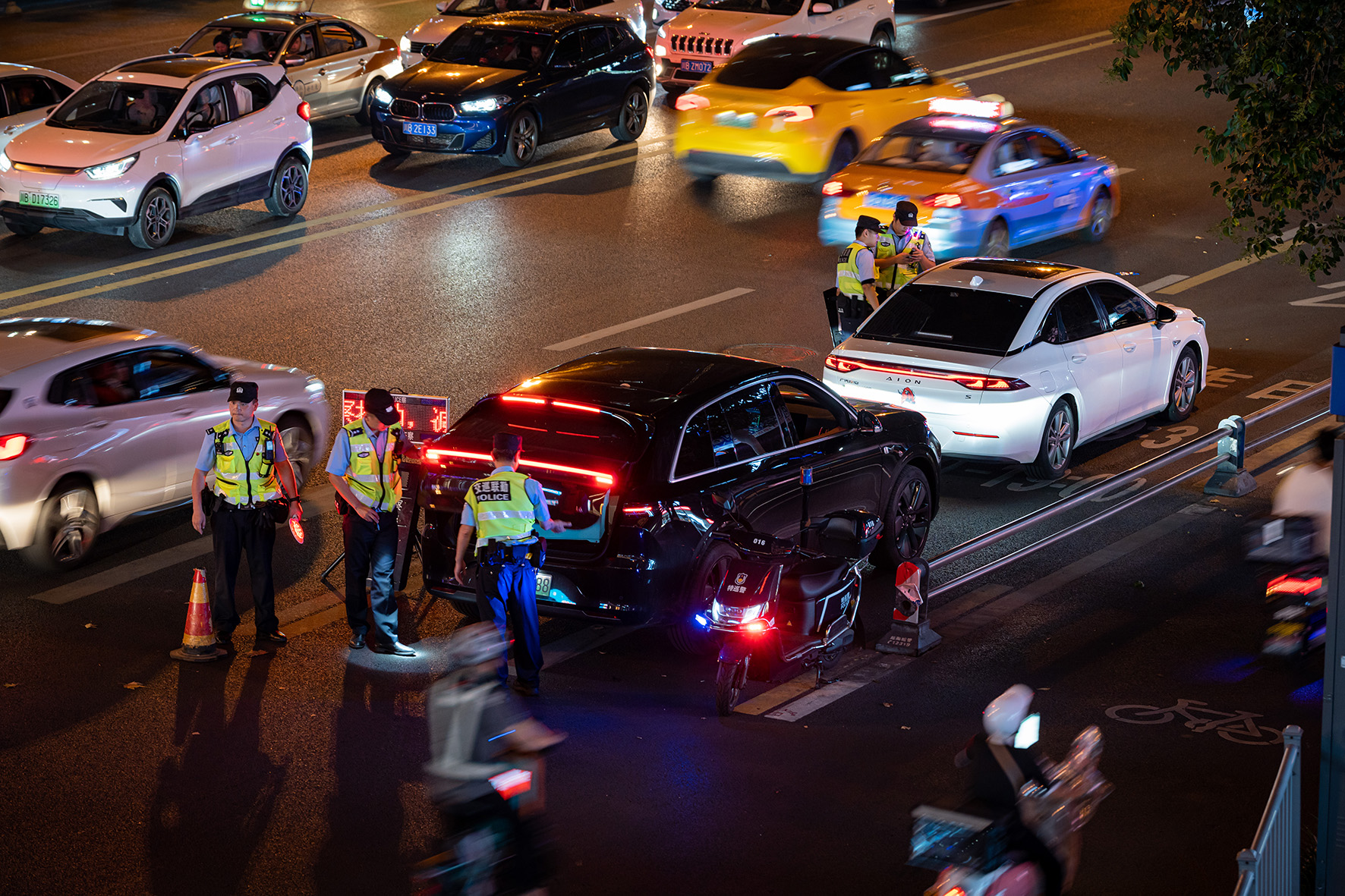 7月6日晚,安徽省亳州市公安局禁毒民警聯(lián)合交警部門開展“酒毒同檢”行動。