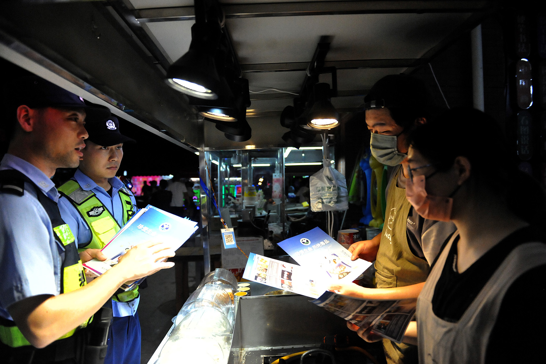 7月6日晚,安徽省寧國市公安局針對夏季易發(fā)打架斗毆類違法行為特點,在夜宵攤點等人員密集場所集中開展巡查宣防,借助算好違法“成本價”,教育引導廣大市民共同營造平安有序的社會治安環(huán)境。
