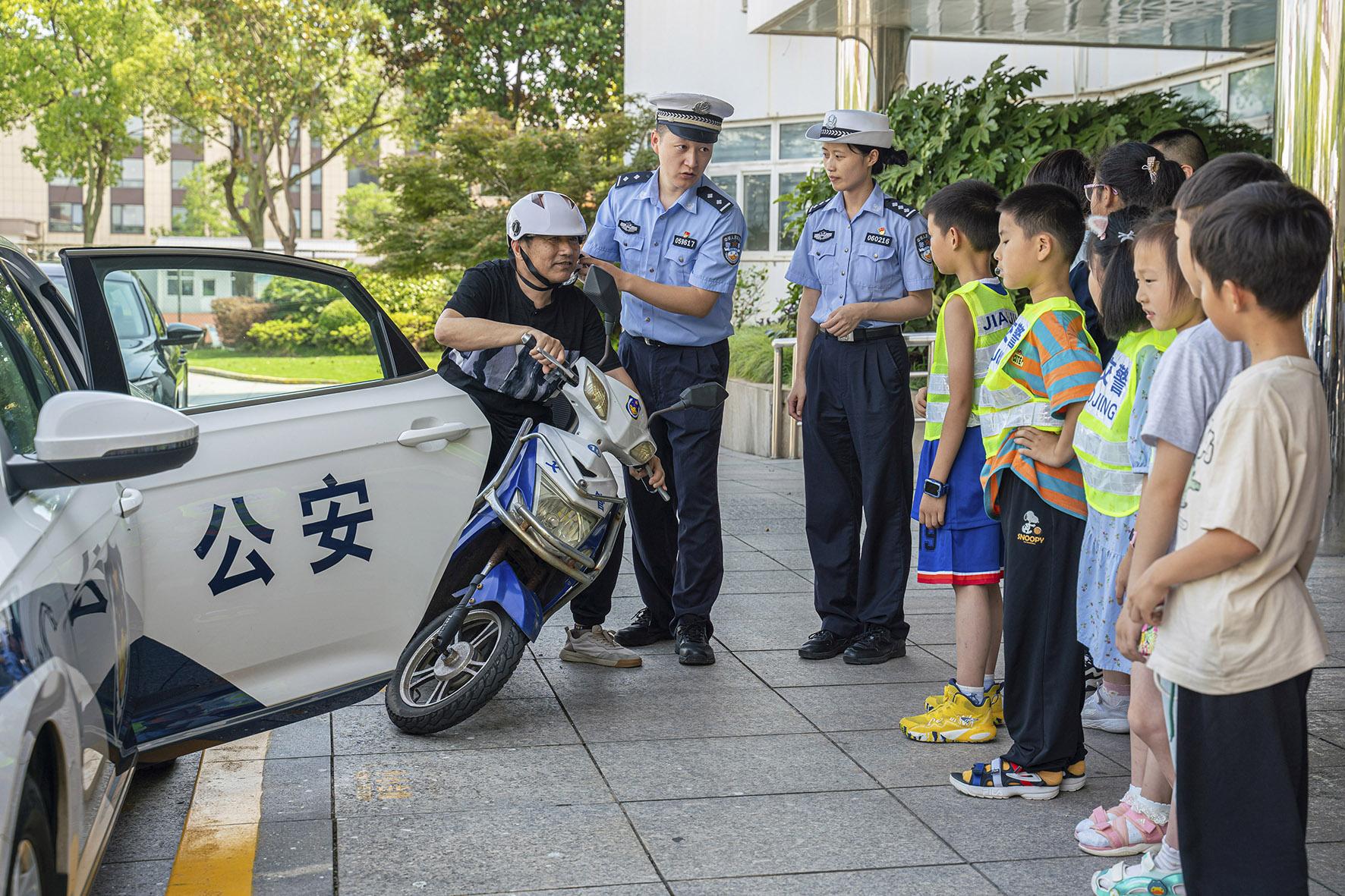 圖為7月26日,崇明分局交警支隊(duì)組織民警來到“安心暑托班”,為孩子們上了一堂生動的交通安全課。