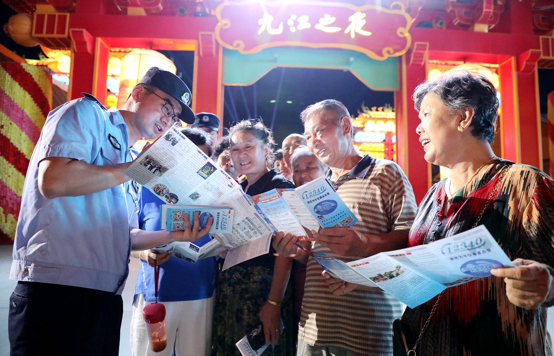8月4日,江西省九江市公安局濂溪分局結(jié)合夏季治安打擊整治行動(dòng),組織民警輔警走進(jìn)村莊社區(qū)、文旅休閑街區(qū)開(kāi)展“平安夏夜 共同守護(hù)”主題安全知識(shí)宣傳活動(dòng),把安全防范知識(shí)送到群眾身邊。