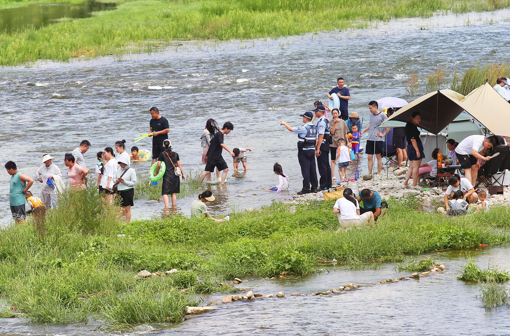 8月2日,山東省濟南市公安局市中區(qū)分局黨家莊派出所民警在玉符河附近巡邏,對下水游玩的市民游客開展安全教育。自夏季治安打擊整治行動開展以來,濟南市公安局市中區(qū)分局持續(xù)強化景區(qū)巡防力度,全面加強隱患排查,全力做好安全宣講,為群眾提供服務(wù),確保轄區(qū)和諧安寧。