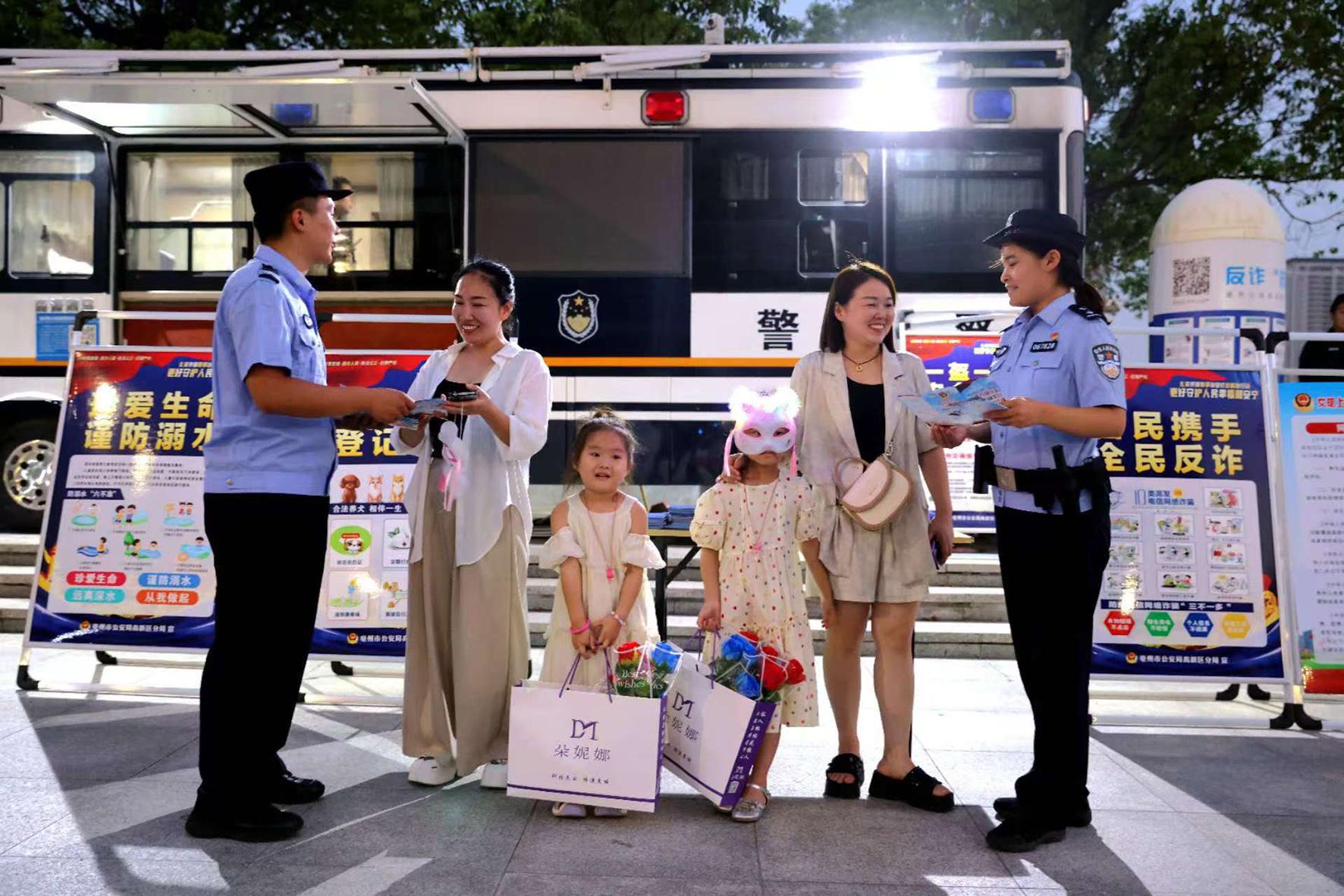 8月11日晚,安徽省當(dāng)涂縣公安局平安小分隊(duì)結(jié)合夏夜治安巡查宣防統(tǒng)一行動,深入社區(qū)、公園、夜市、廣場和群眾納涼場所等,以群眾“看得見、容易懂、記得住”的方式,開展防養(yǎng)老詐騙、防溺水、反傳銷、禁毒等安全知識宣傳。