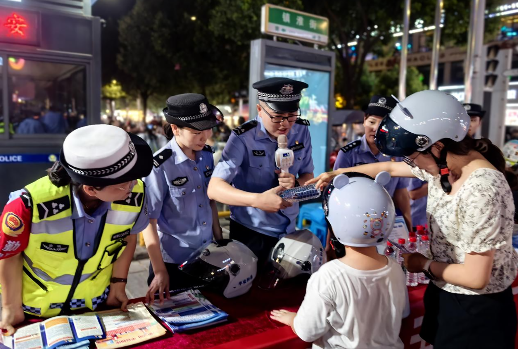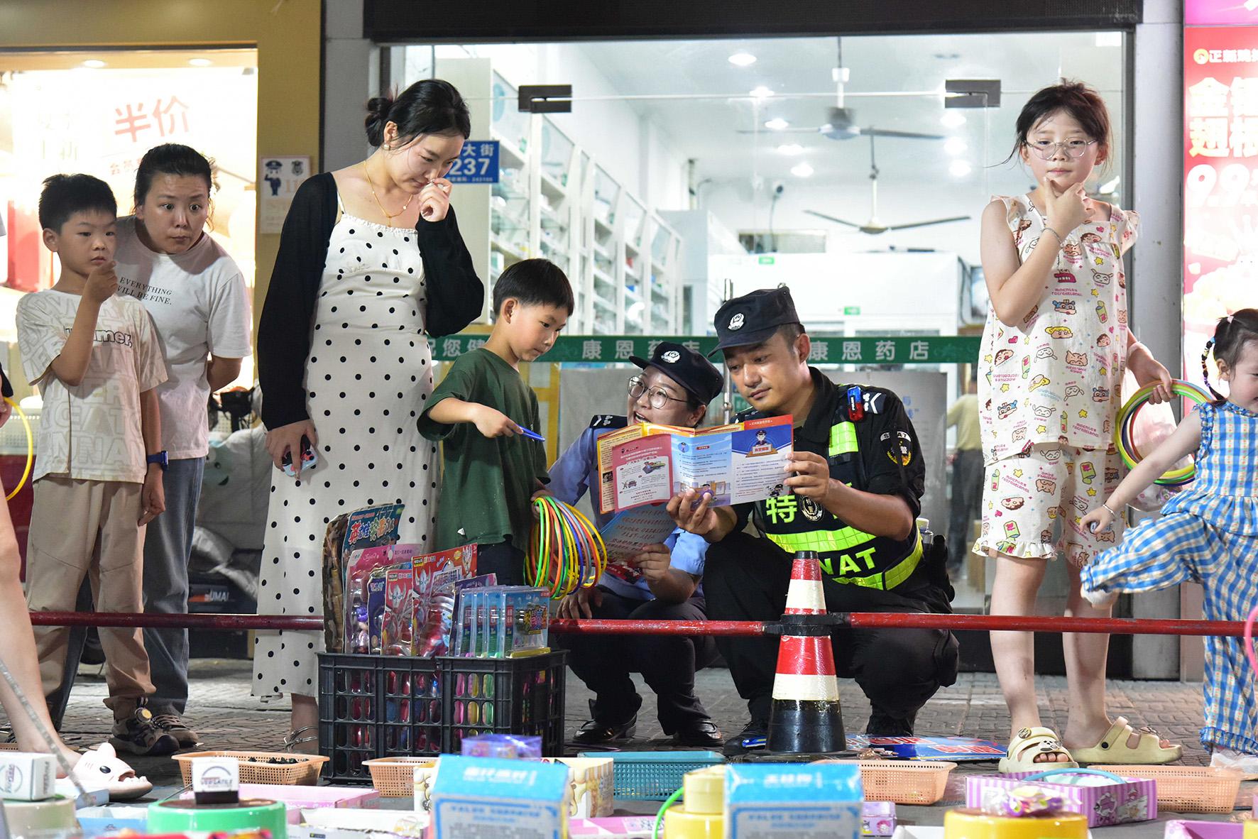8月11日晚,安徽省和縣公安局經(jīng)偵、禁毒、刑偵等警種聯(lián)合在商業(yè)集中區(qū)域“擺夜攤”,與市民“零”距離互動,通過有獎(jiǎng)競答,贈送法治用品等形式,提升群眾自我保護(hù)意識和法治意識。