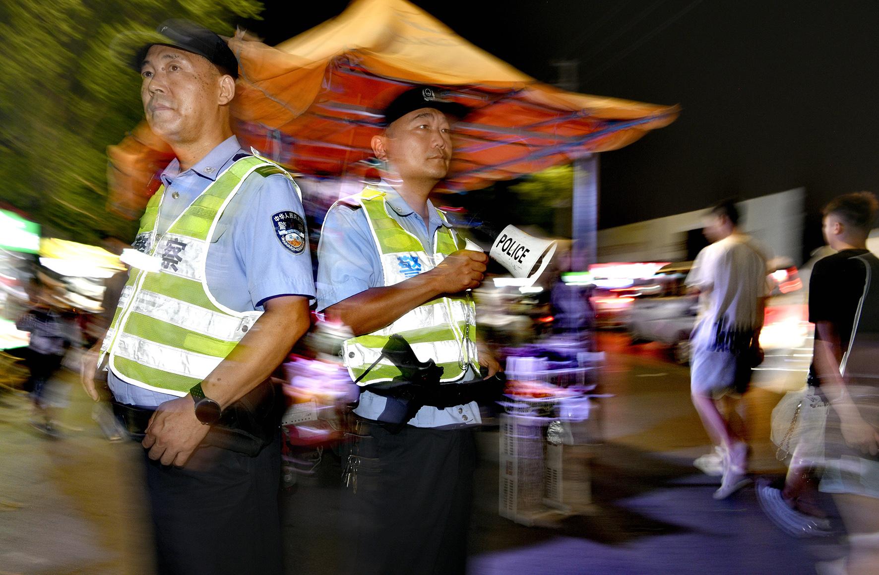 8月10日,河南省鄭州市公安局金水分局巡特警隊(duì)員在全市公安機(jī)關(guān)夏夜治安巡查宣防統(tǒng)一行動中,全力以赴恪盡職守,“當(dāng)好守夜人”。