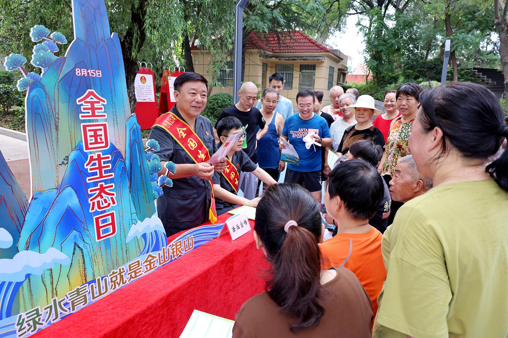 圖為8月14日,法官在社區(qū)公園向市民宣傳生態(tài)環(huán)境保護法律法規(guī)知識。