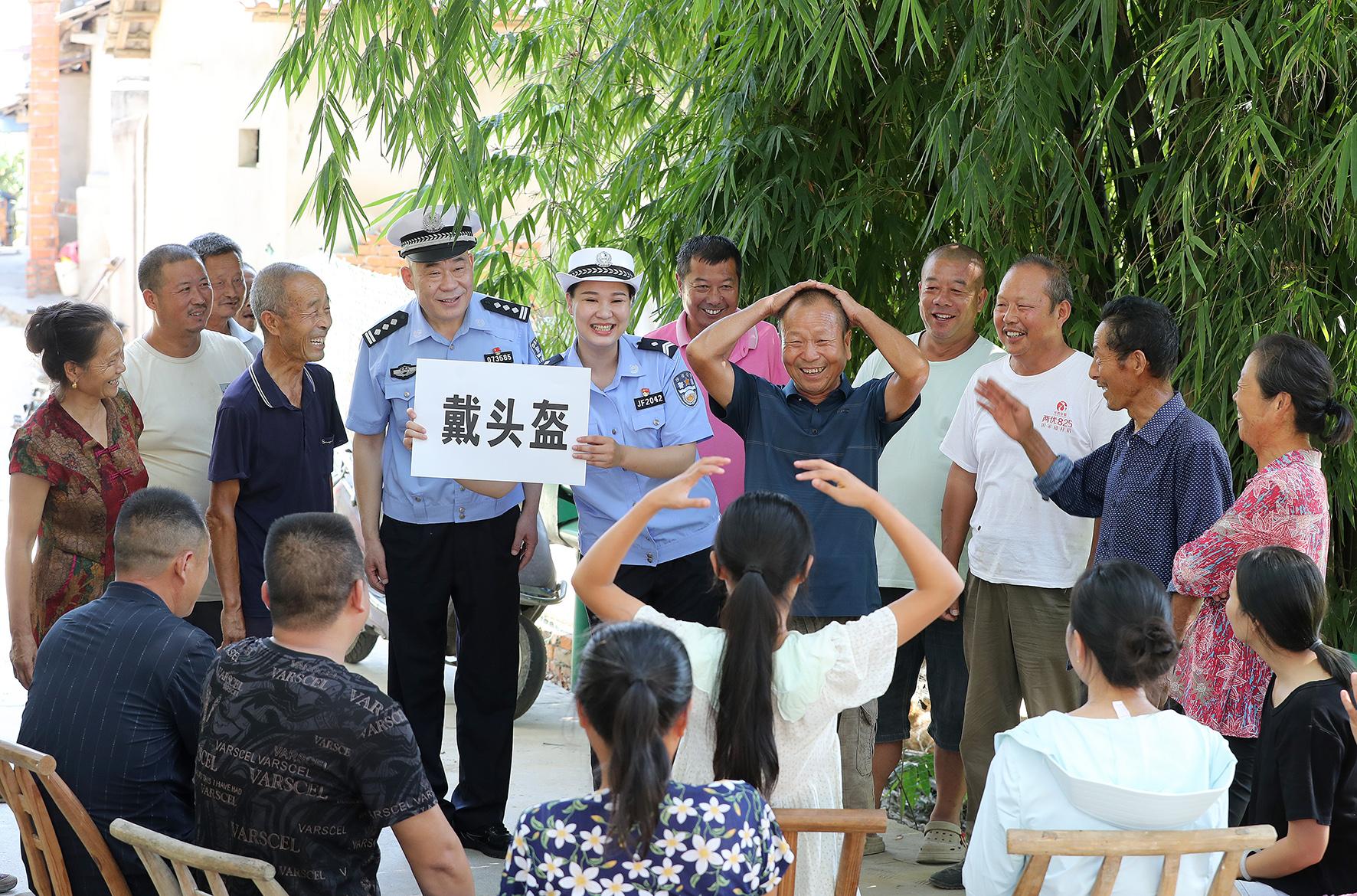 8月13日,在湖北省荊門市沙洋縣李市鎮(zhèn)新城村,沙洋縣公安局交警大隊(duì)民警通過“我比你猜”趣味活動(dòng),向村民宣傳交通安全知識(shí)。