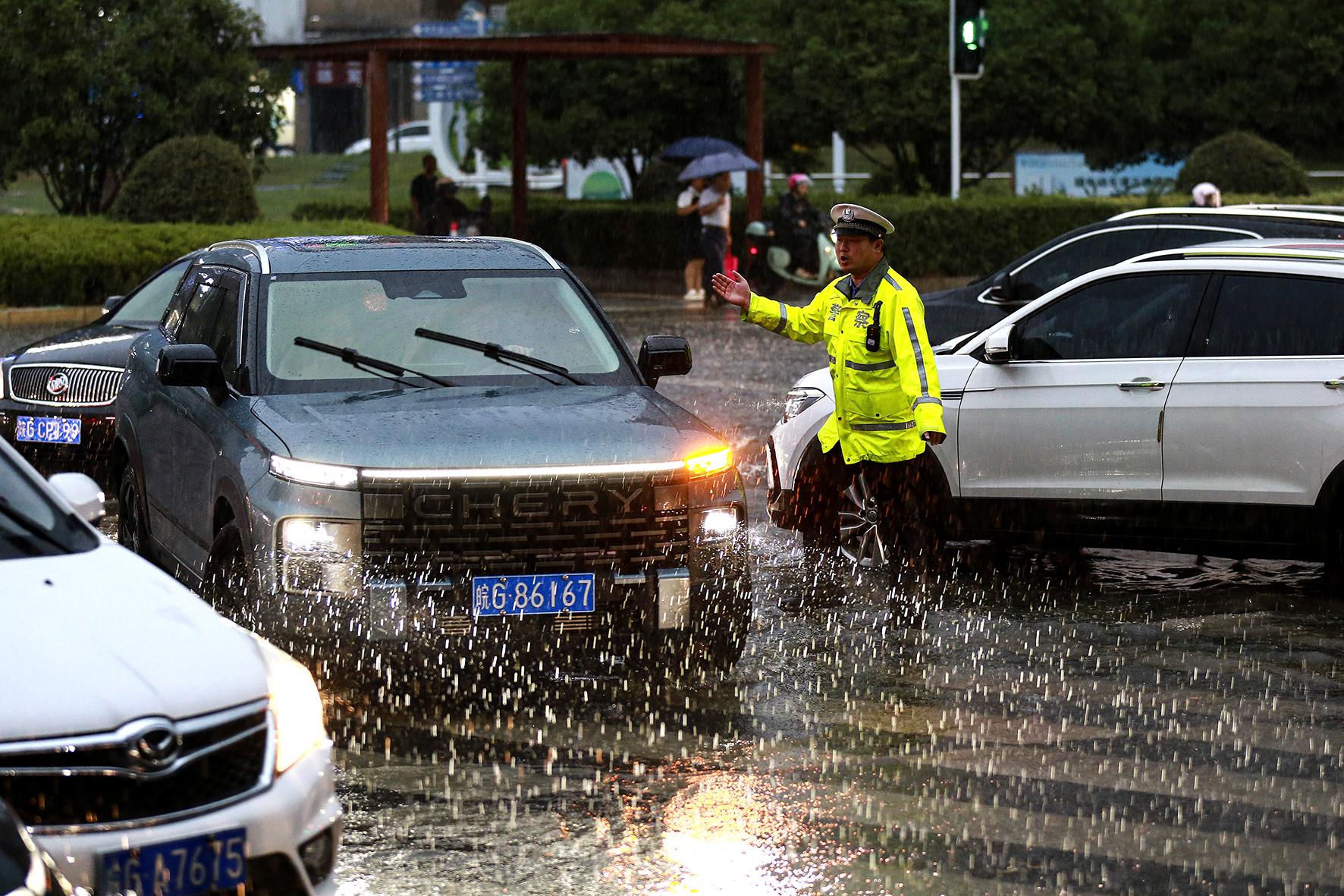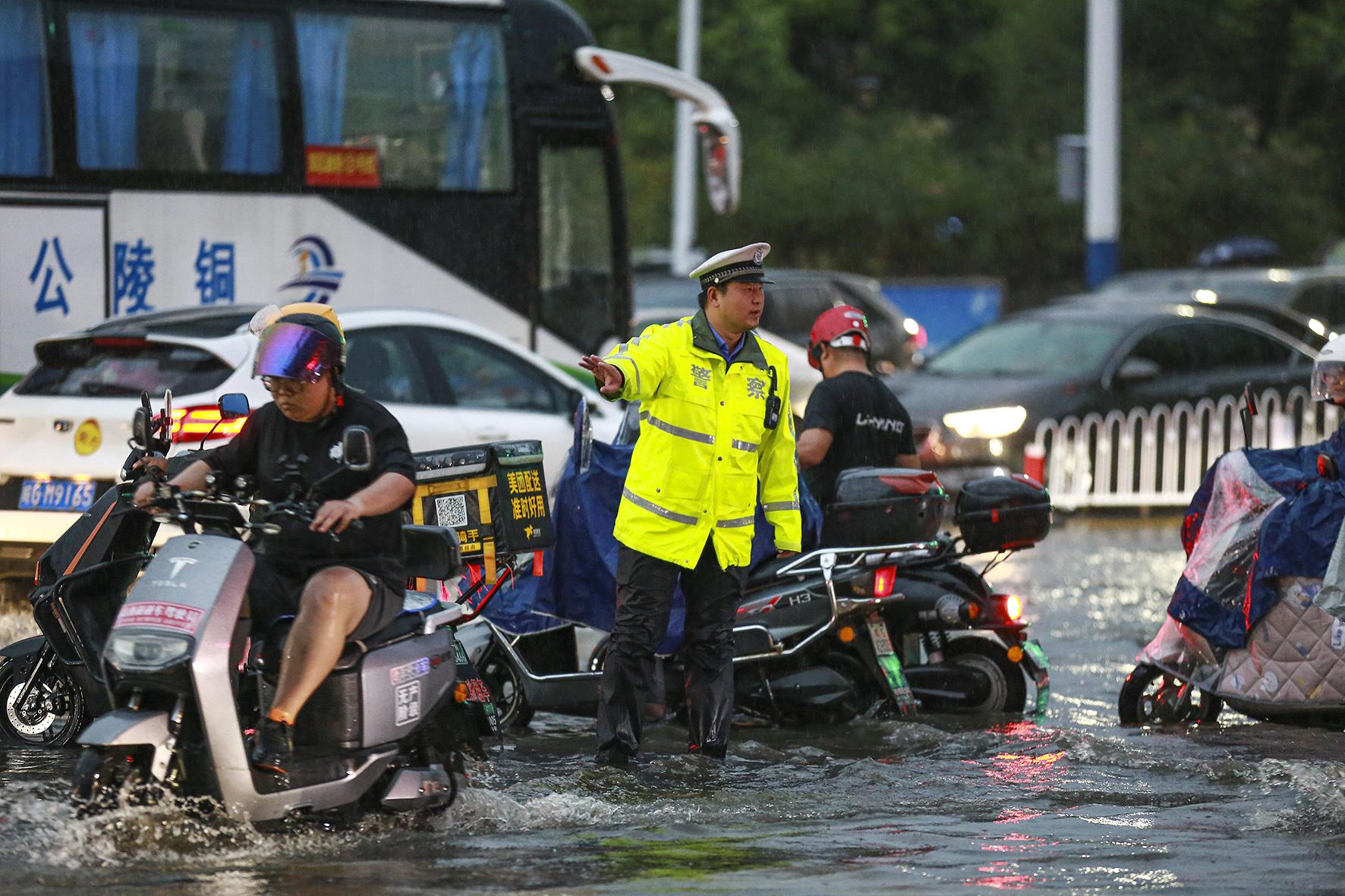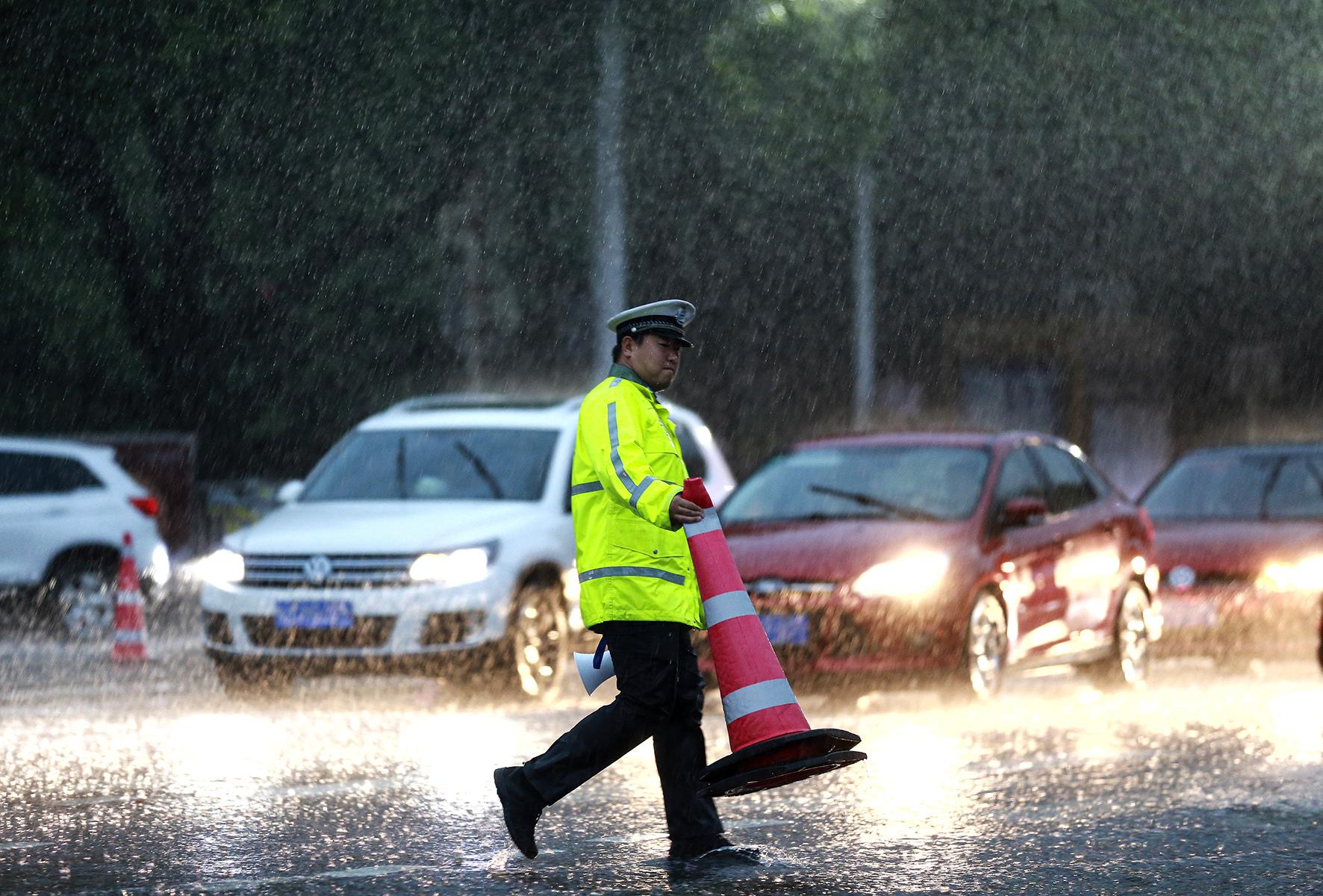 8月13日18時,安徽省銅陵市突降暴雨,主城區(qū)部分道路和低洼路段積水嚴重。銅陵市公安局交警支隊立即啟動應急預案,轄區(qū)各大隊及時增派警力,在內澇路段指揮疏導交通,確保人民群眾的安全及通行順暢。