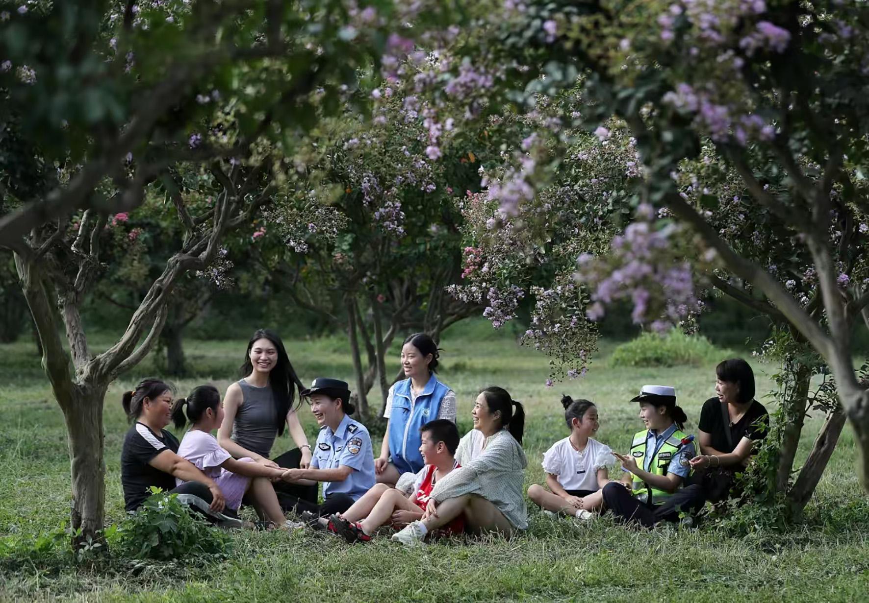 8月15日,湖北省鐘祥市公安局“巾幗護(hù)蕾”小分隊(duì)在皇莊街道皇城社區(qū)通過心理團(tuán)體輔導(dǎo)游戲,向社區(qū)婦女和兒童普及未成年人心理健康教育知識(shí)。