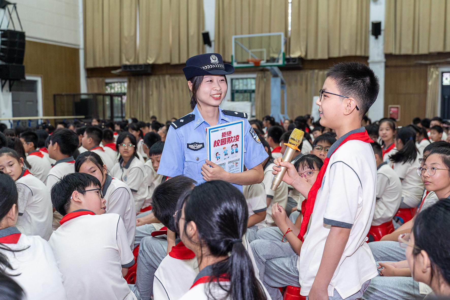 8月27日,上海市公安局崇明分局城橋派出所民警走進(jìn)轄區(qū)東門中學(xué),為學(xué)校新生上了一堂生動的法治宣講主題課。