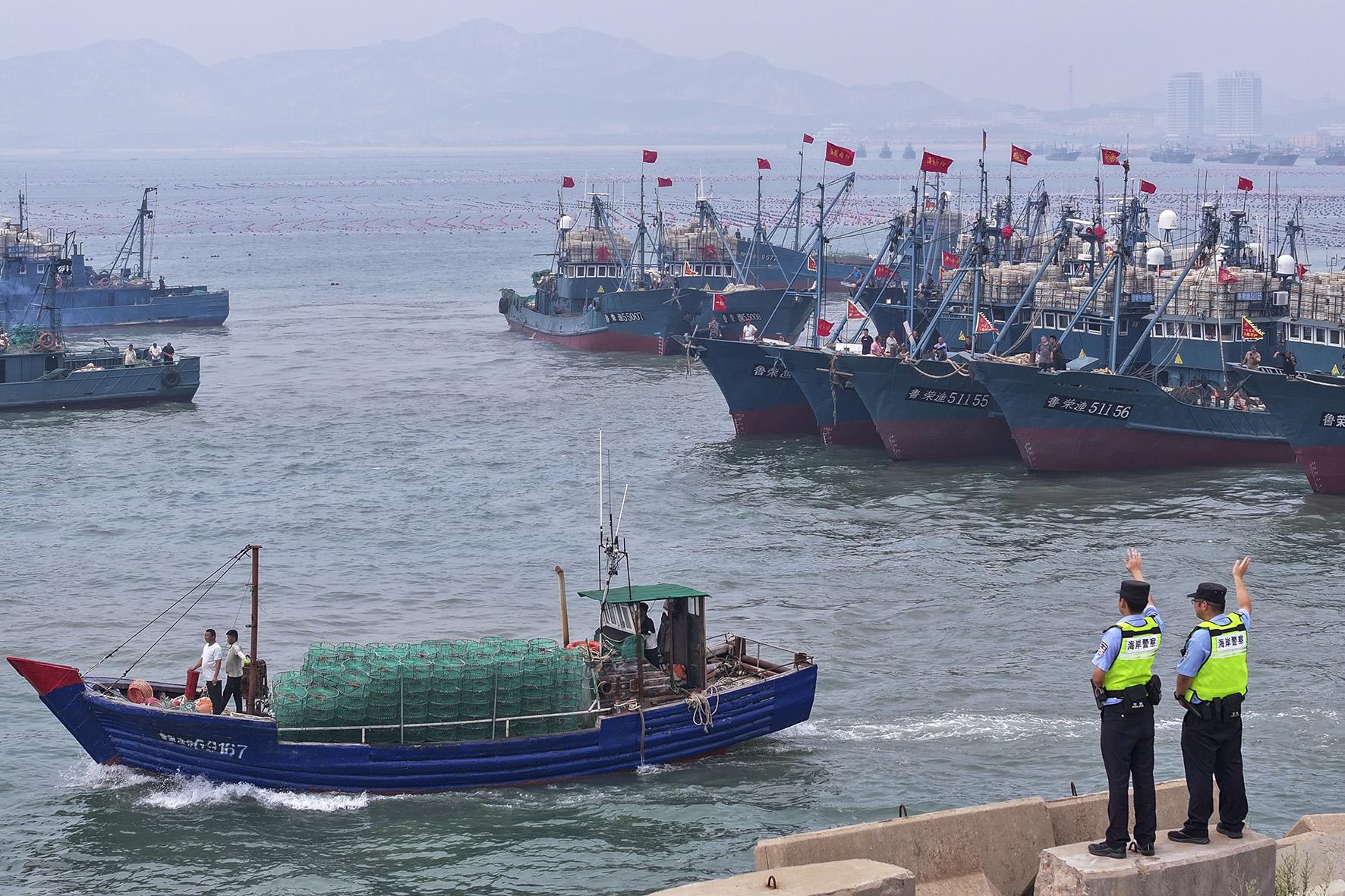 9月1日12時(shí),我國黃渤海海域結(jié)束伏季休漁,山東半島地區(qū)漁船民喜迎開海。威海市公安局海岸警察支隊(duì)組織海岸民警加強(qiáng)漁港碼頭巡邏守護(hù),協(xié)助漁政工作人員維護(hù)開?,F(xiàn)場(chǎng)秩序,為廣大漁船民喜迎秋捕豐收提供安全保障。