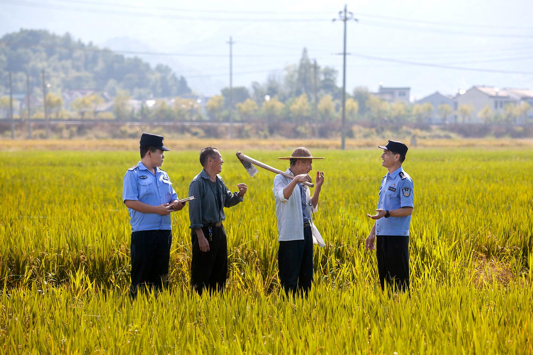 10月15日,浙江省臺(tái)州市公安局黃巖分局北洋派出所民警在田間地頭走訪群眾、調(diào)處糾紛,宣傳防范網(wǎng)絡(luò)電信詐騙知識(shí)。