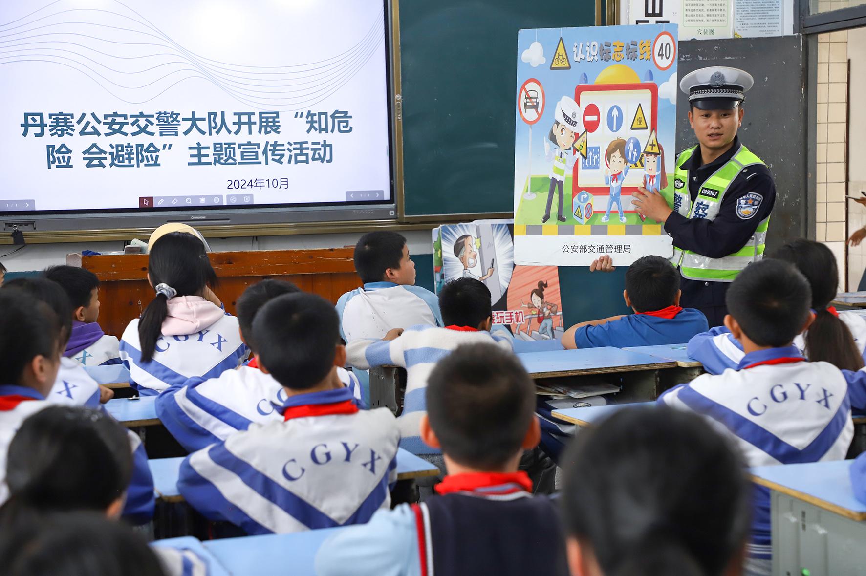 10月18日,貴州省丹寨縣公安局交通警察大隊(duì)民警走進(jìn)轄區(qū)城關(guān)一小,以主題班會(huì)的形式向同學(xué)們開展交通安全宣傳教育。