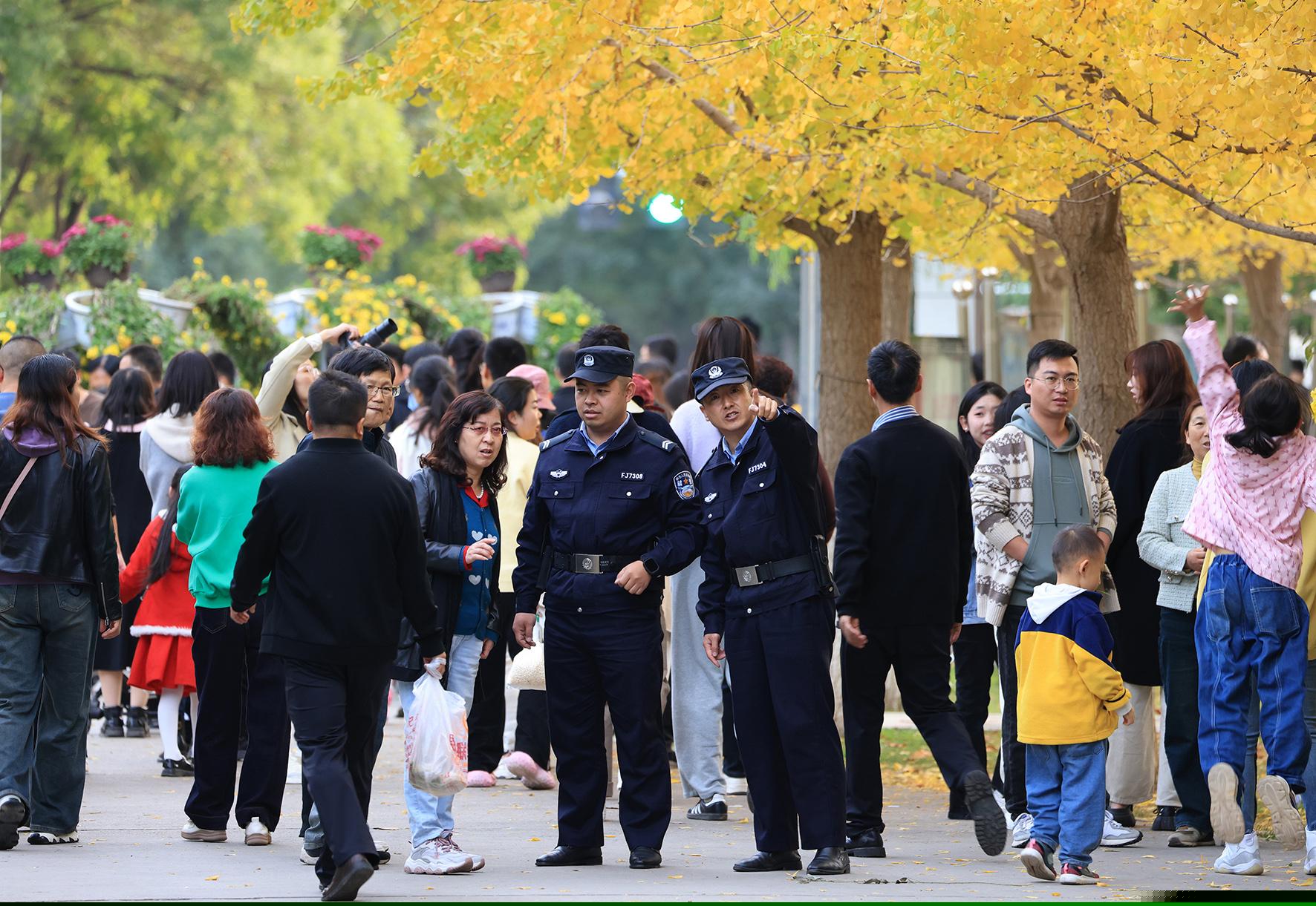 圖為10月20日,民警輔警在植物園巡邏,服務(wù)游客。