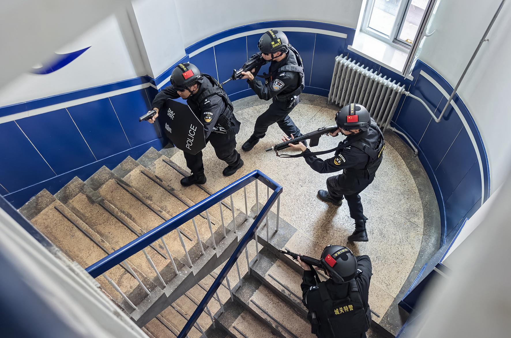 為進(jìn)一步加強(qiáng)特警隊(duì)員反恐實(shí)戰(zhàn)能力,提高隊(duì)員戰(zhàn)術(shù)素養(yǎng)及快速反應(yīng)能力,10月18日,甘肅省蘭州市公安局城關(guān)分局特警大隊(duì)組織開(kāi)展房屋、樓道反恐搜捕戰(zhàn)術(shù)訓(xùn)練。