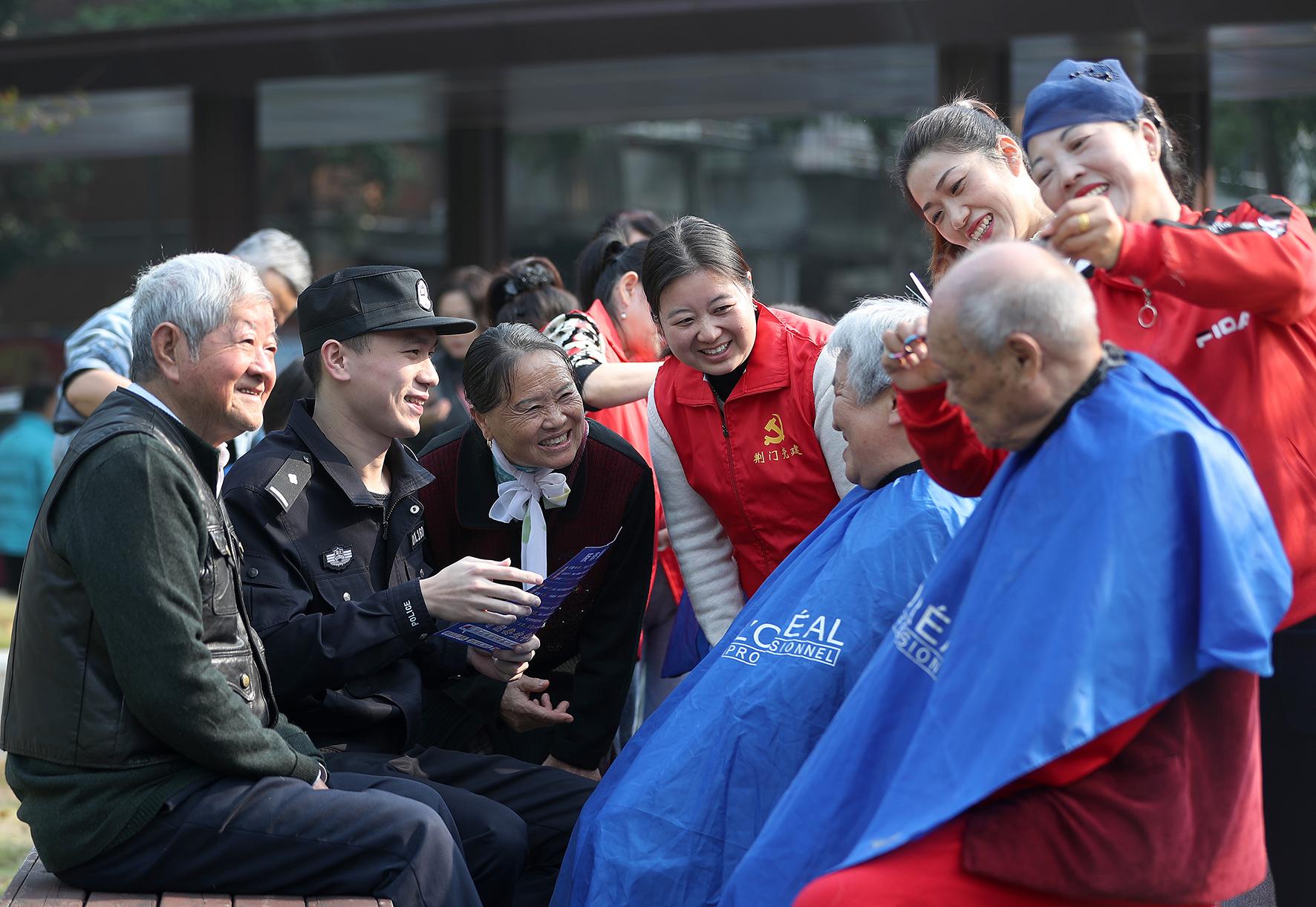 10月30日,湖北省荊門市公安局高新區(qū)·掇刀區(qū)分局白廟派出所民警和社區(qū)“反詐宣傳”志愿者在長源熱電社區(qū),向老年人開展“養(yǎng)老反詐”普法宣傳。