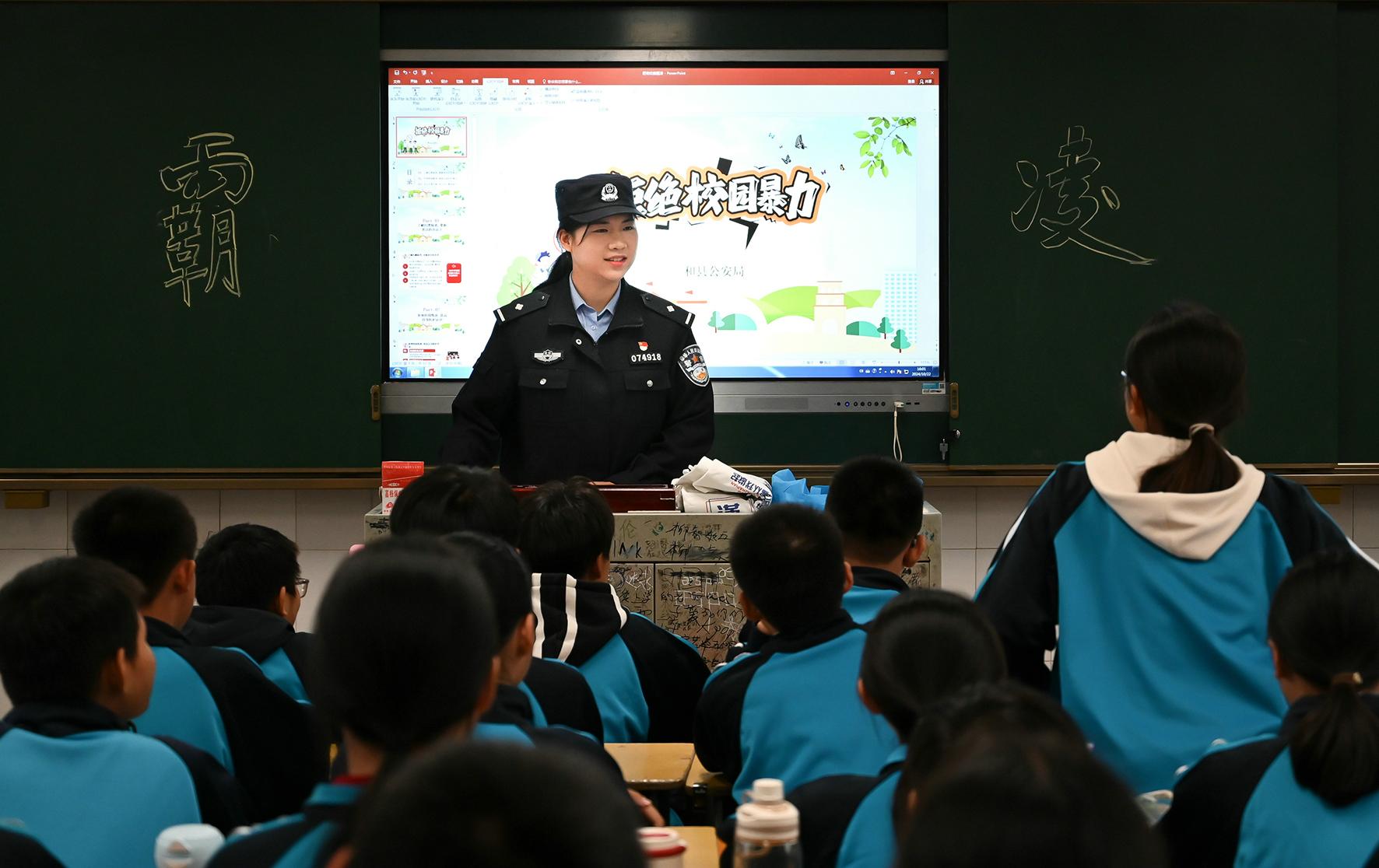 11月4日,安徽省馬鞍山市和縣公安局民警在校園開展“拒絕暴力 反對校園欺凌”主題班會。