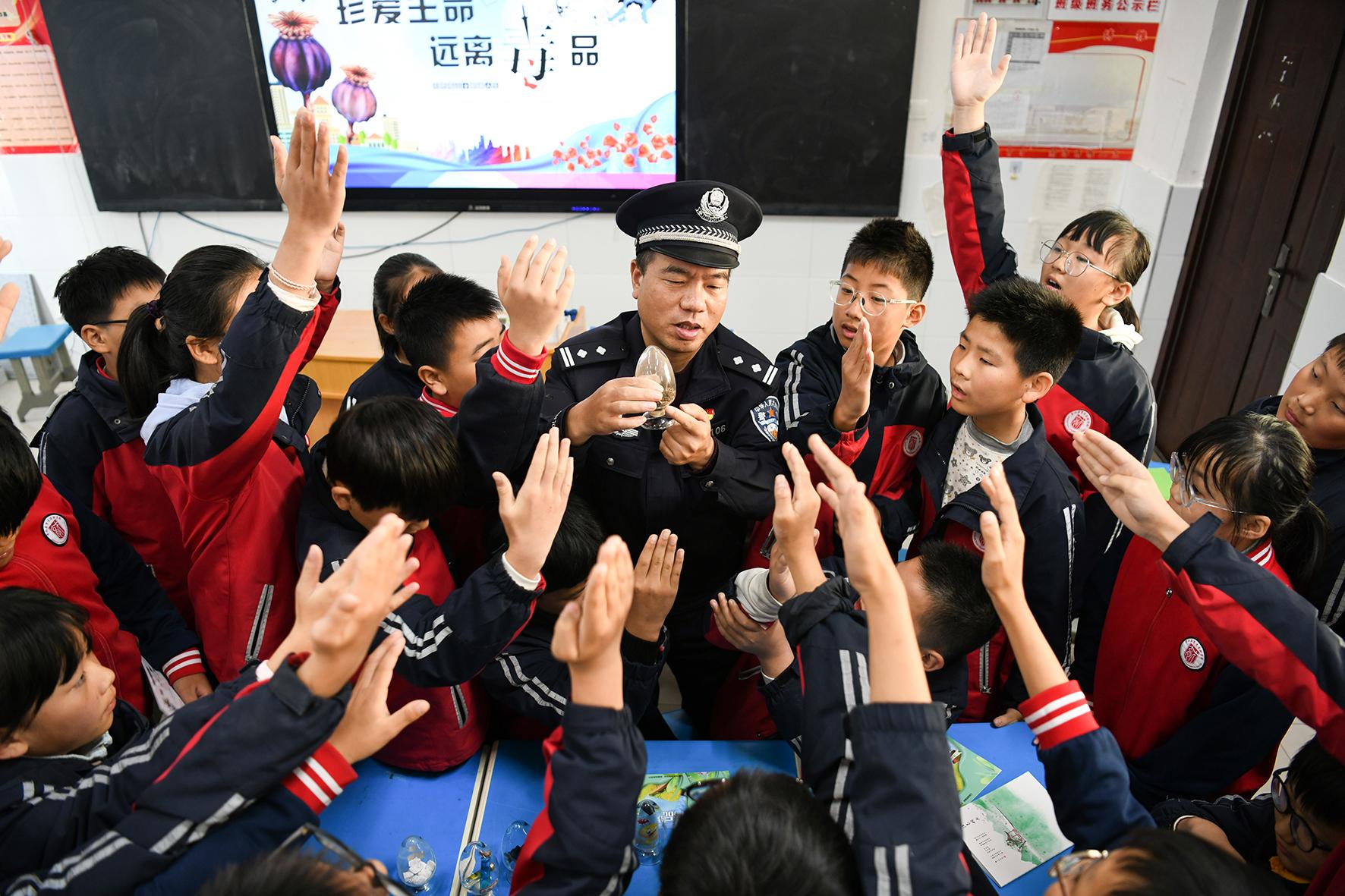 11月21日,安徽省含山縣公安局花山派出所組織民警開(kāi)展禁毒宣傳進(jìn)校園活動(dòng),為青少年健康成長(zhǎng)保駕護(hù)航。