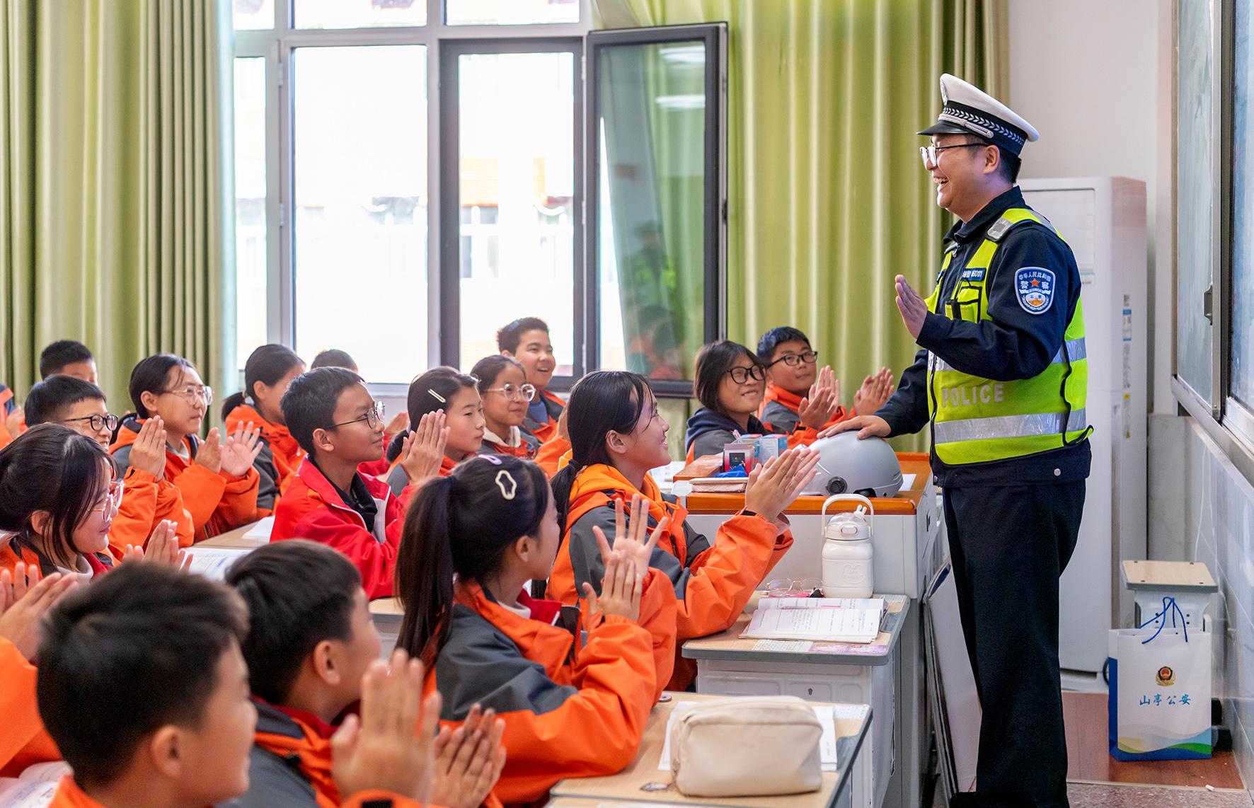 11月22日,山東省棗莊市公安局山亭分局交警大隊民輔警走進(jìn)棗莊市第四十中學(xué)西校區(qū),開展交通安全宣傳教育活動。