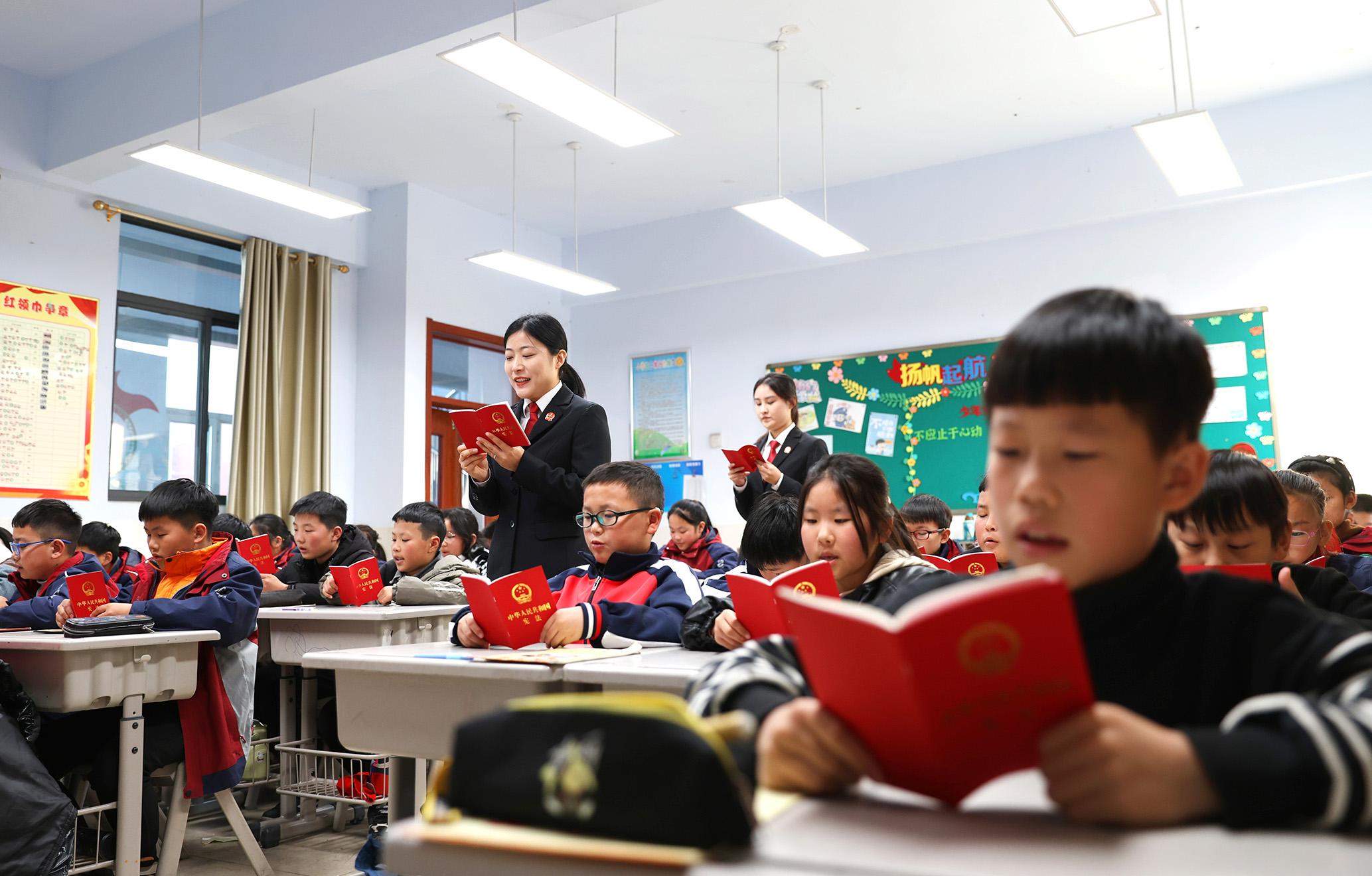 12月2日,山東省臨沭縣人民法院法官助理走進(jìn)青云鎮(zhèn)中心小學(xué),開展“法護(hù)青禾 與‘憲’同行”普法宣傳活動,普及憲法知識,弘揚(yáng)憲法精神。