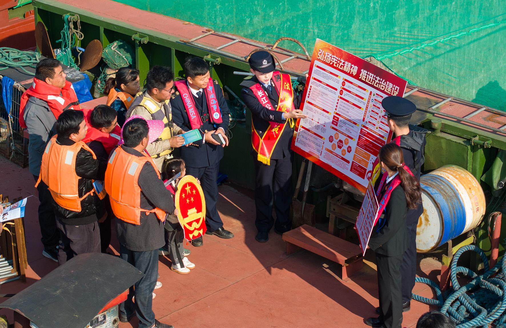 12月2日,長江航運(yùn)公安局鎮(zhèn)江分局鎮(zhèn)江派出所聯(lián)合海事、法院等江蘇省鎮(zhèn)江市船員法律援助站成員單位,在長江江蘇鎮(zhèn)江段開展憲法上船頭活動。