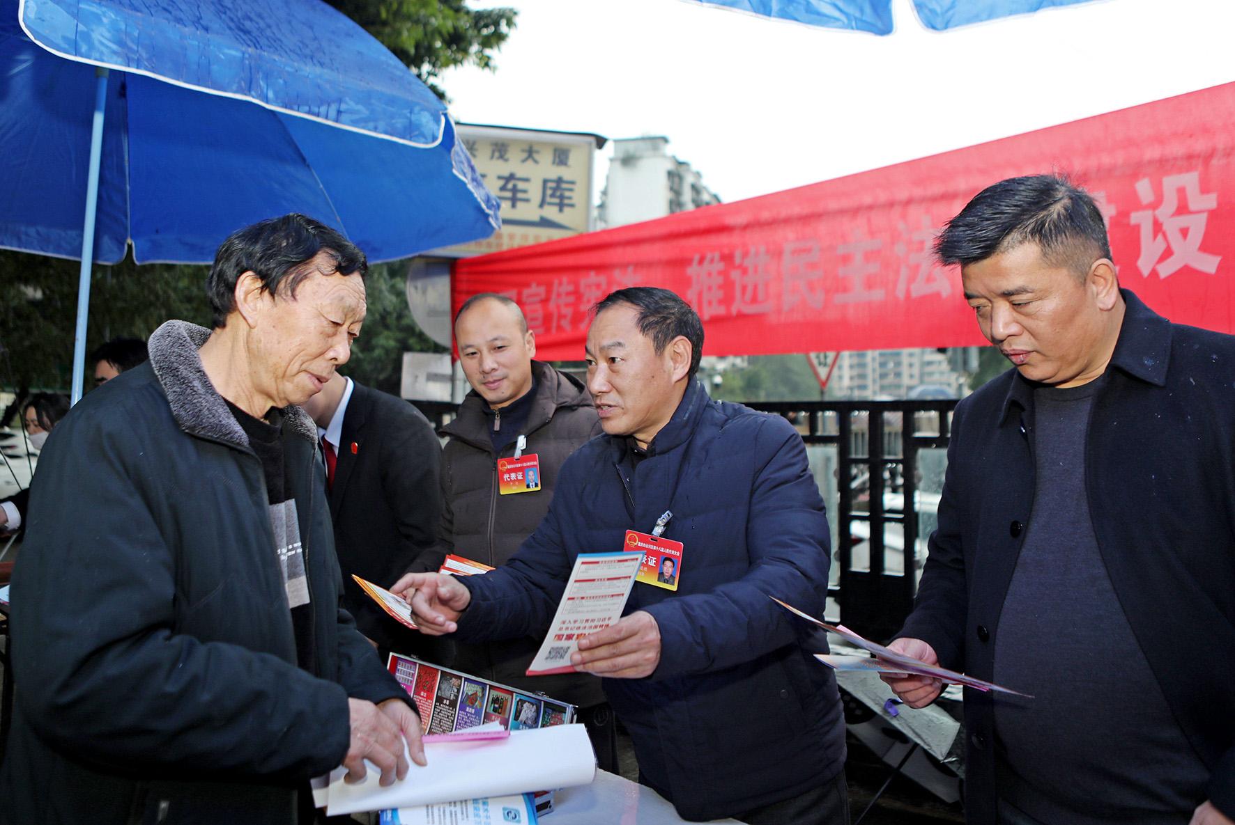 12月5日,重慶市永川區(qū)南大街街道人大工委聯(lián)合永川區(qū)人民法院,組織轄區(qū)人大代表、平安辦、綜合執(zhí)法大隊(duì)、司法所等單位在瀘州街開展“憲法宣傳周”集中宣傳活動(dòng)。