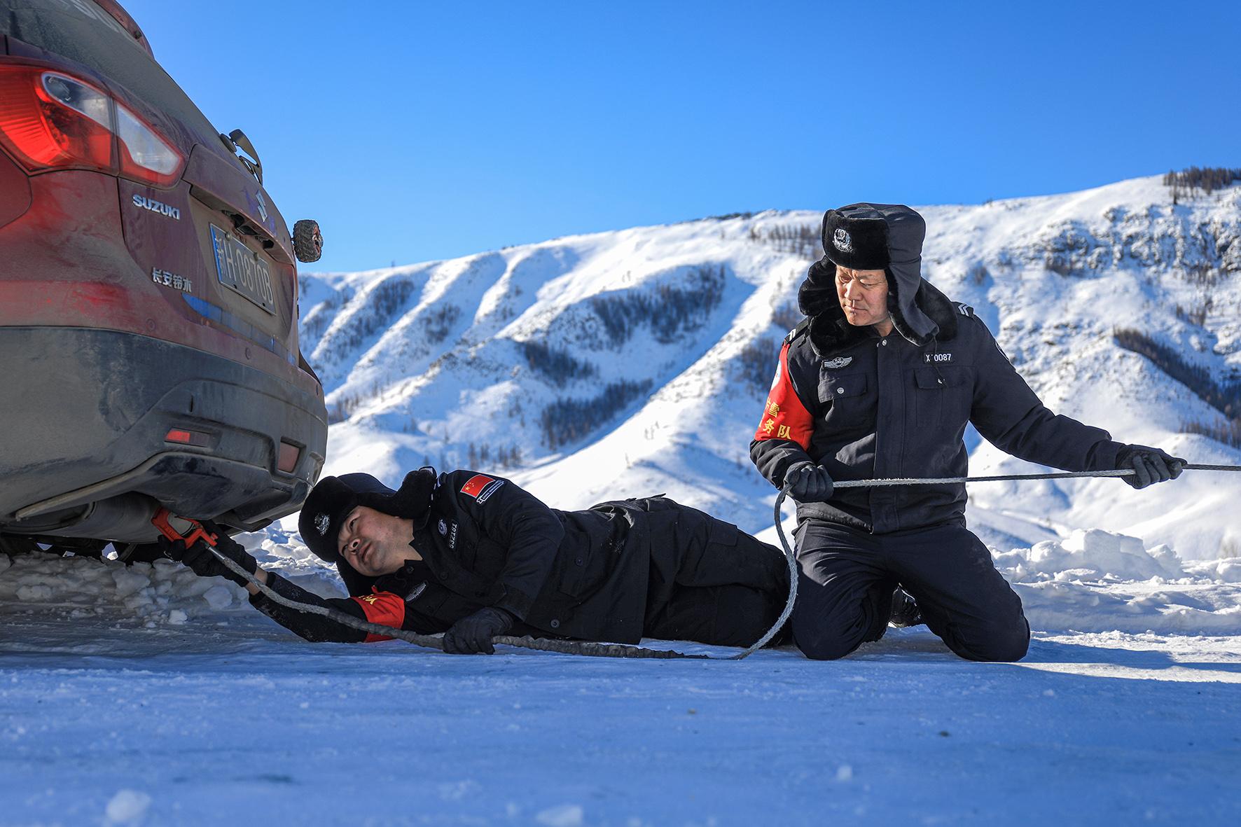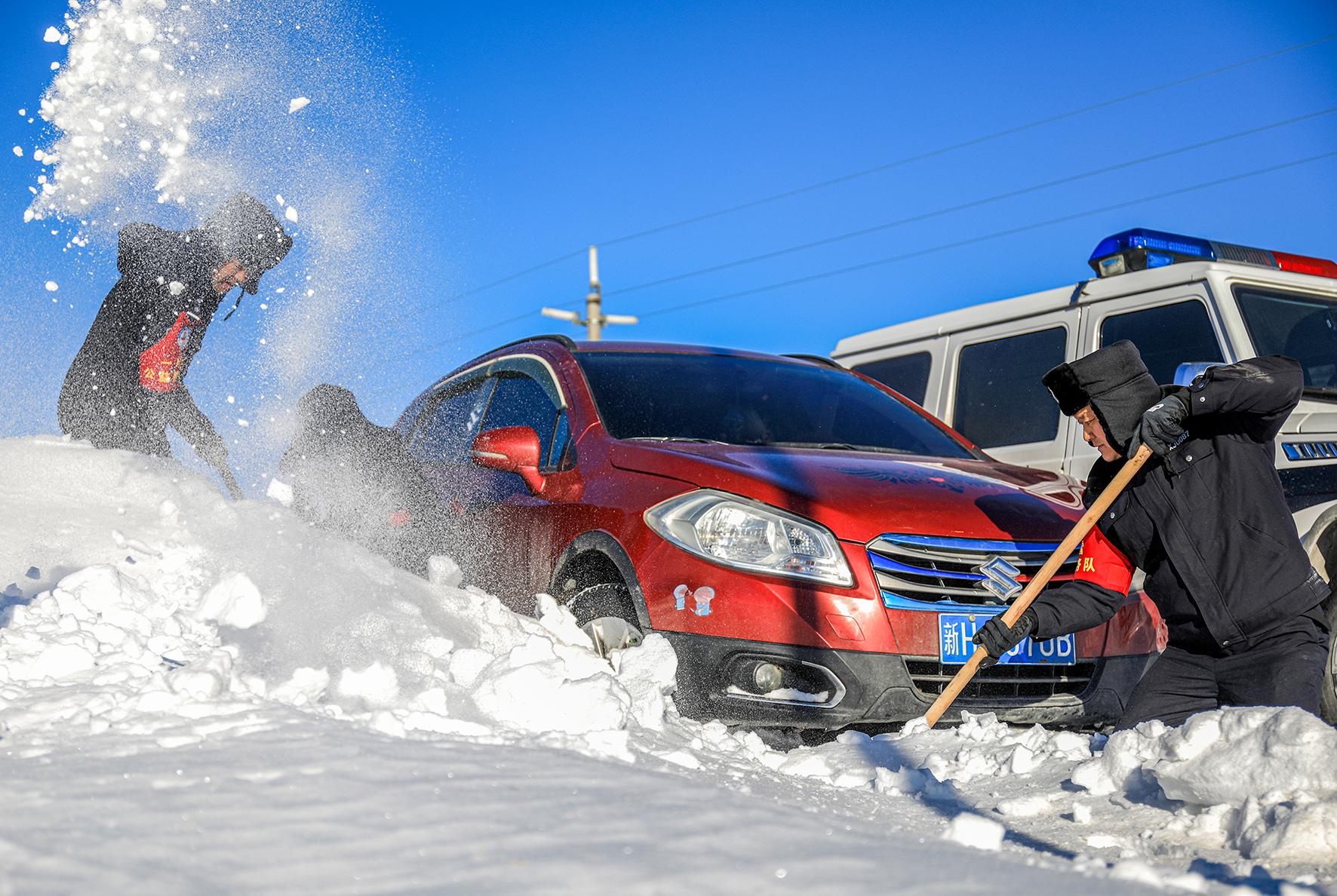 12月5日12時(shí)許,新疆出入境邊防檢查總站阿勒泰邊境管理支隊(duì)庫衛(wèi)邊境派出所接到群眾求助稱車輛因積雪滑下路基被困。接到求助警情后,巡邏警力第一時(shí)間趕赴現(xiàn)場(chǎng),通過清挖積雪和警車牽引的方式,成功將被困人員和車輛救出。