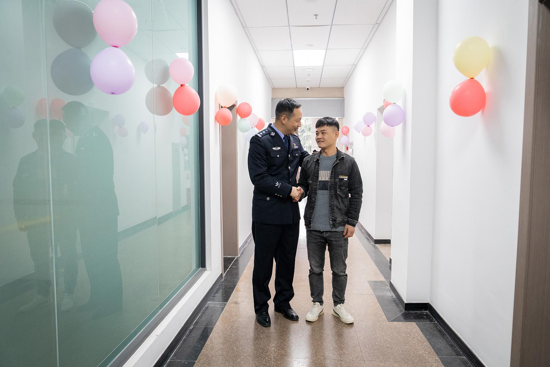 圖1:胡祥雨警官安慰著即將見(jiàn)到親人的蔡先生。