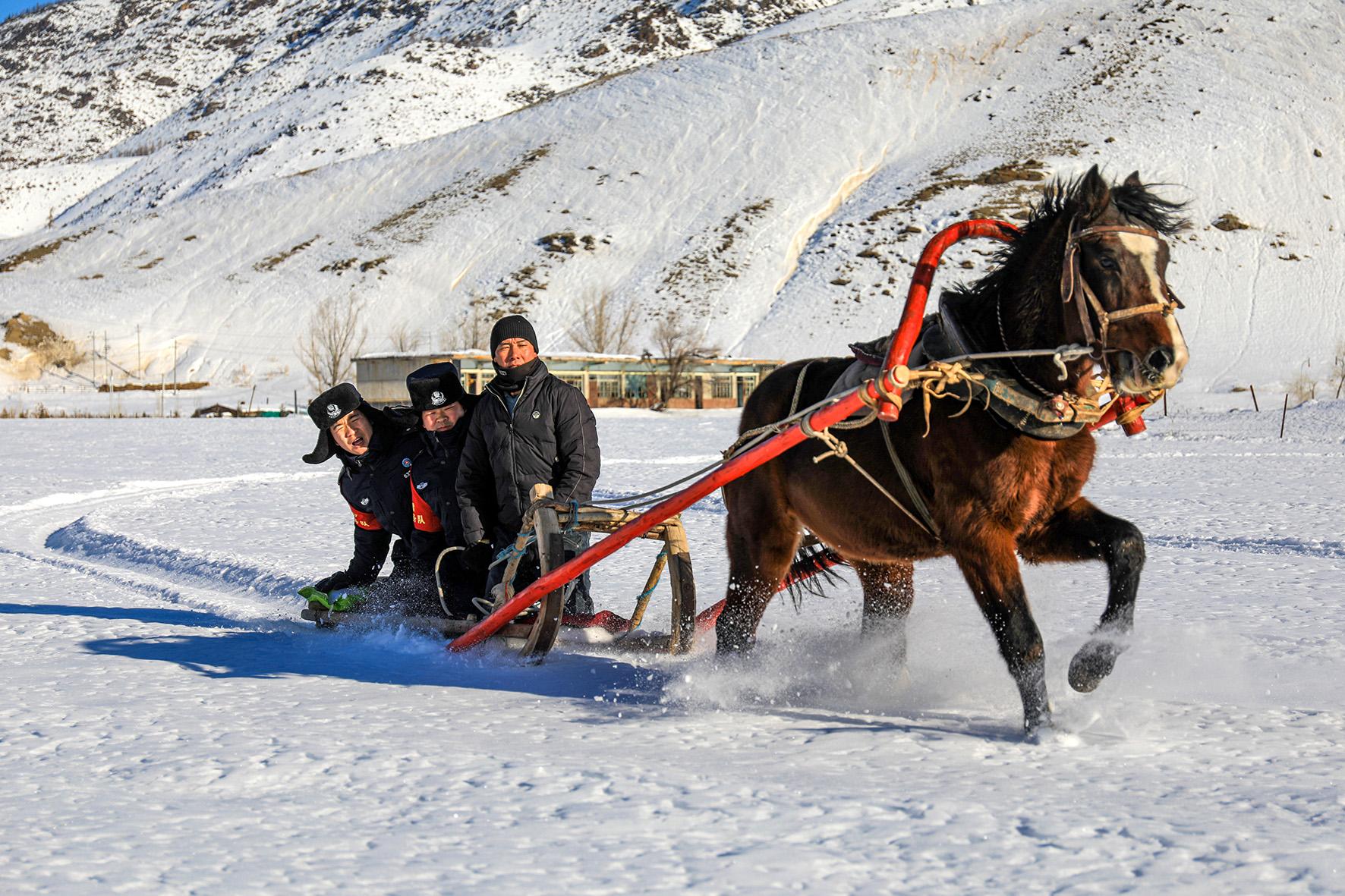 12月8日,新疆阿勒泰地區(qū)因降雪給部分村莊農(nóng)戶日常出行造成不便。新疆出入境邊防檢查總站阿勒泰邊境管理支隊庫衛(wèi)邊境派出所民警和護邊員采取馬拉爬犁的方式,走訪轄區(qū)群眾,梳理群眾困難需求,并對困難農(nóng)戶開展冬季慰問,保障轄區(qū)群眾平安過冬。