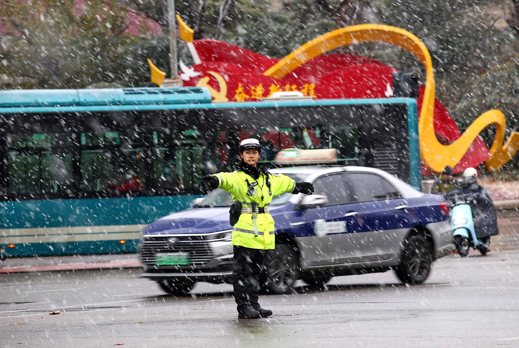 12月13日,山東省濟(jì)南市迎來降雪天氣。濟(jì)南市公安局交警支隊(duì)市中區(qū)大隊(duì)啟動(dòng)惡劣天氣應(yīng)急預(yù)案,加大對重點(diǎn)路段、十字路口的交通疏導(dǎo)力度,為群眾安全出行保駕護(hù)航。