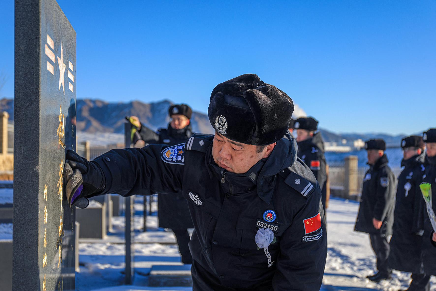 12月13日,新疆出入境邊防檢查總站阿勒泰邊境管理支隊富蘊邊境管理大隊組織民警輔警和護邊員來到富蘊縣烈士陵園,祭奠守衛(wèi)國家犧牲的公安、部隊英烈,賡續(xù)英烈遺志,傳承民族精神。
