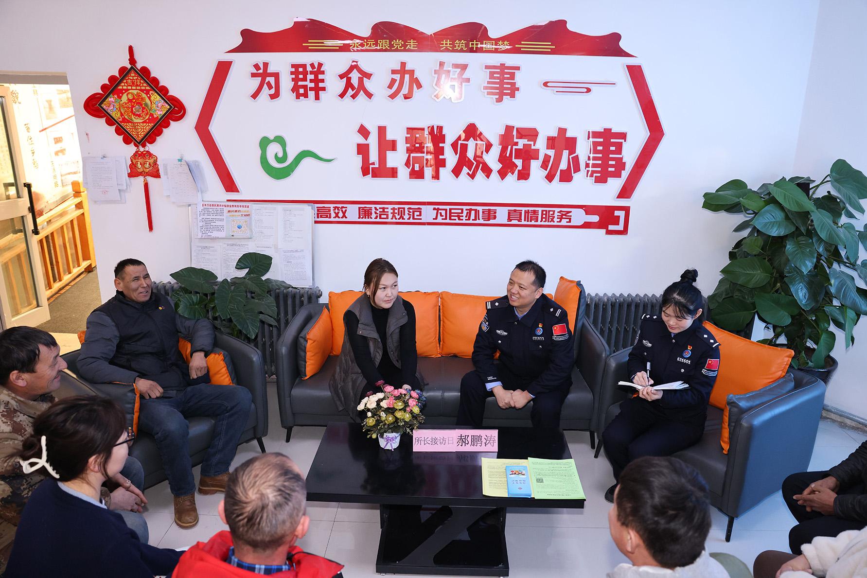 12月25日,新疆阿勒泰邊境管理支隊(duì)托普鐵熱克邊境派出所所長(zhǎng)與轄區(qū)群眾面對(duì)面交流,解答群眾咨詢,聽取群眾意見建議。