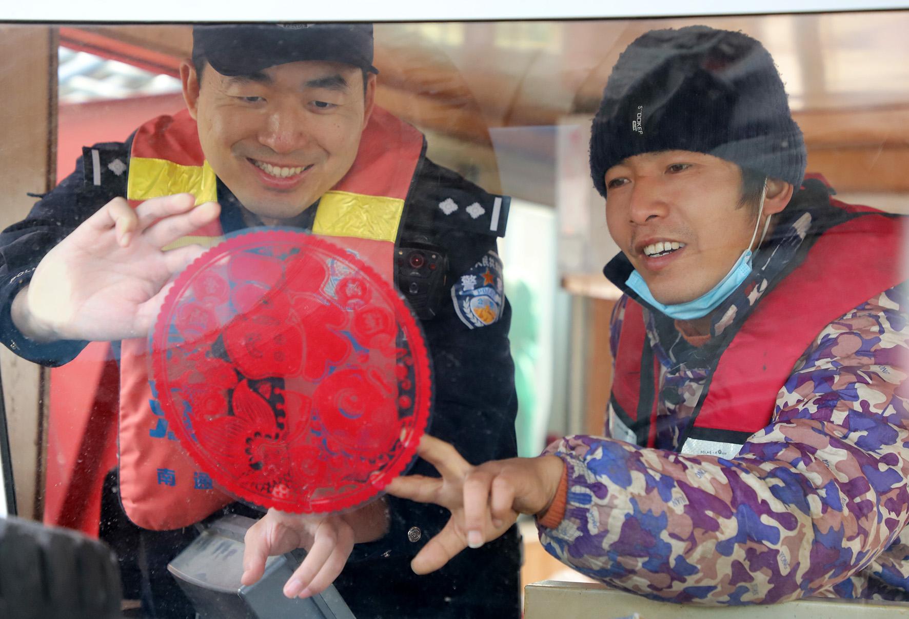 1月16日,長江航運(yùn)公安局南通分局通州派出所組織警力對(duì)靠泊作業(yè)船舶進(jìn)行安全巡查,并送上新春祝福。