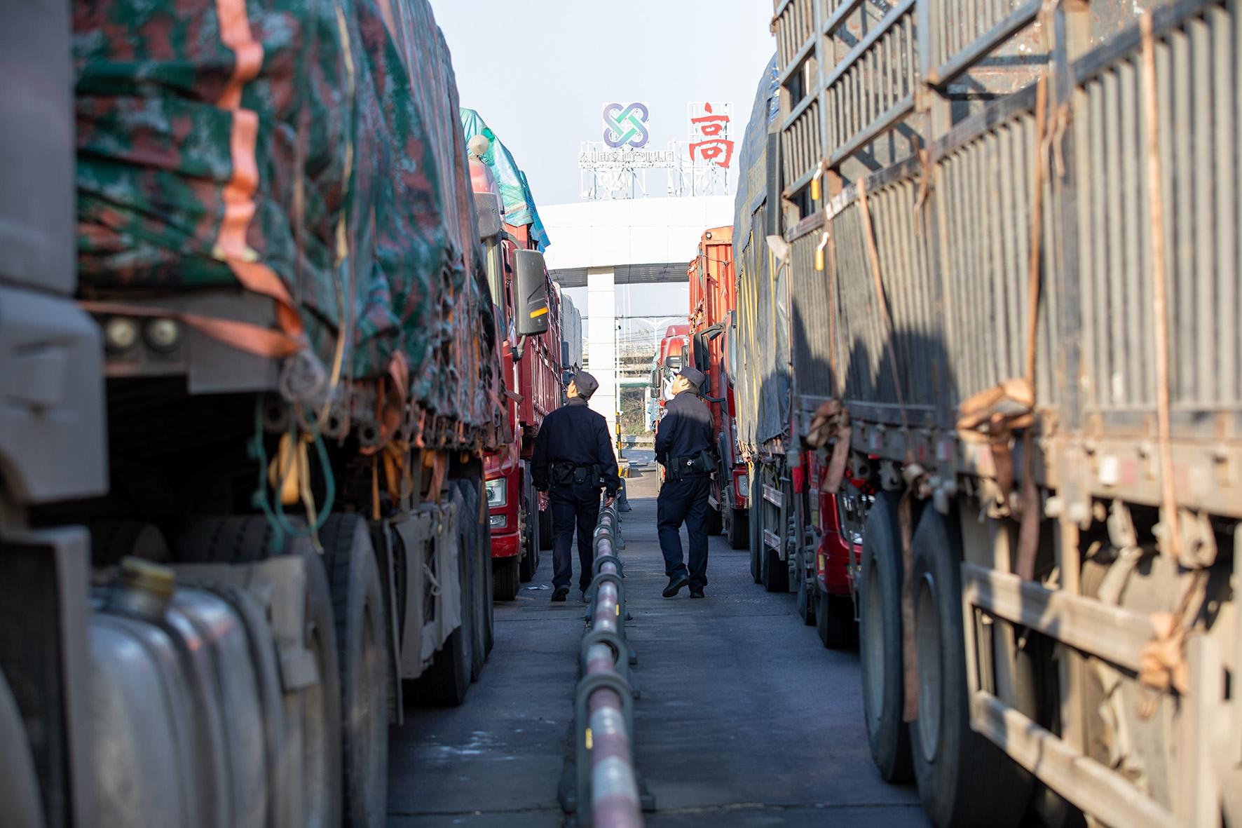 民警在高港汽渡待渡區(qū)開展治安巡邏。