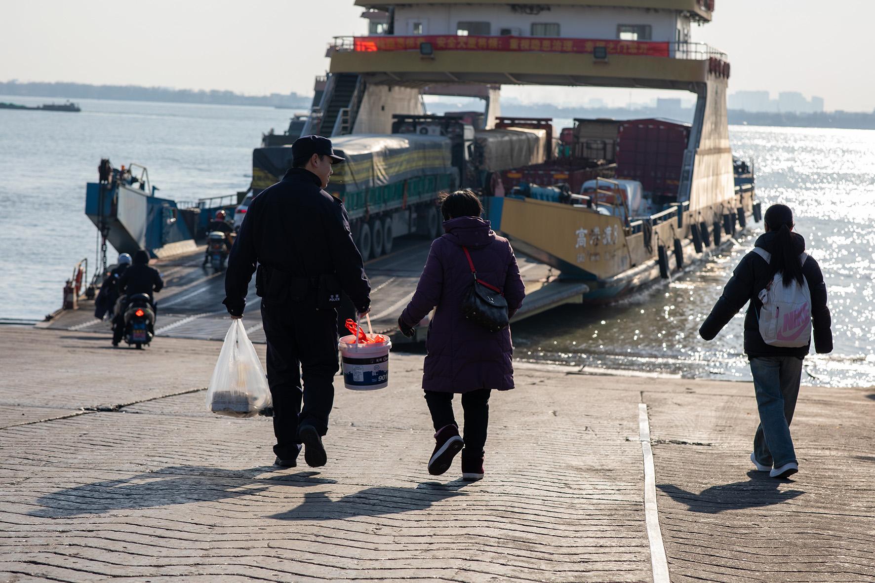 擺渡過江是長江兩岸往來最傳統(tǒng)的交通方式,隨著泰州大橋的開通及周邊過江通道增多,如今乘坐汽渡的旅客越來越少了,但仍然有許多貨運汽車和騎著電動車的群眾選擇渡輪,往返于江蘇泰州和鎮(zhèn)江兩地。長江航運公安局鎮(zhèn)江分局泰州派出所的民警常年駐守在高港汽渡,全力保障汽渡特別是春運期間水上安全,守護平安渡運。