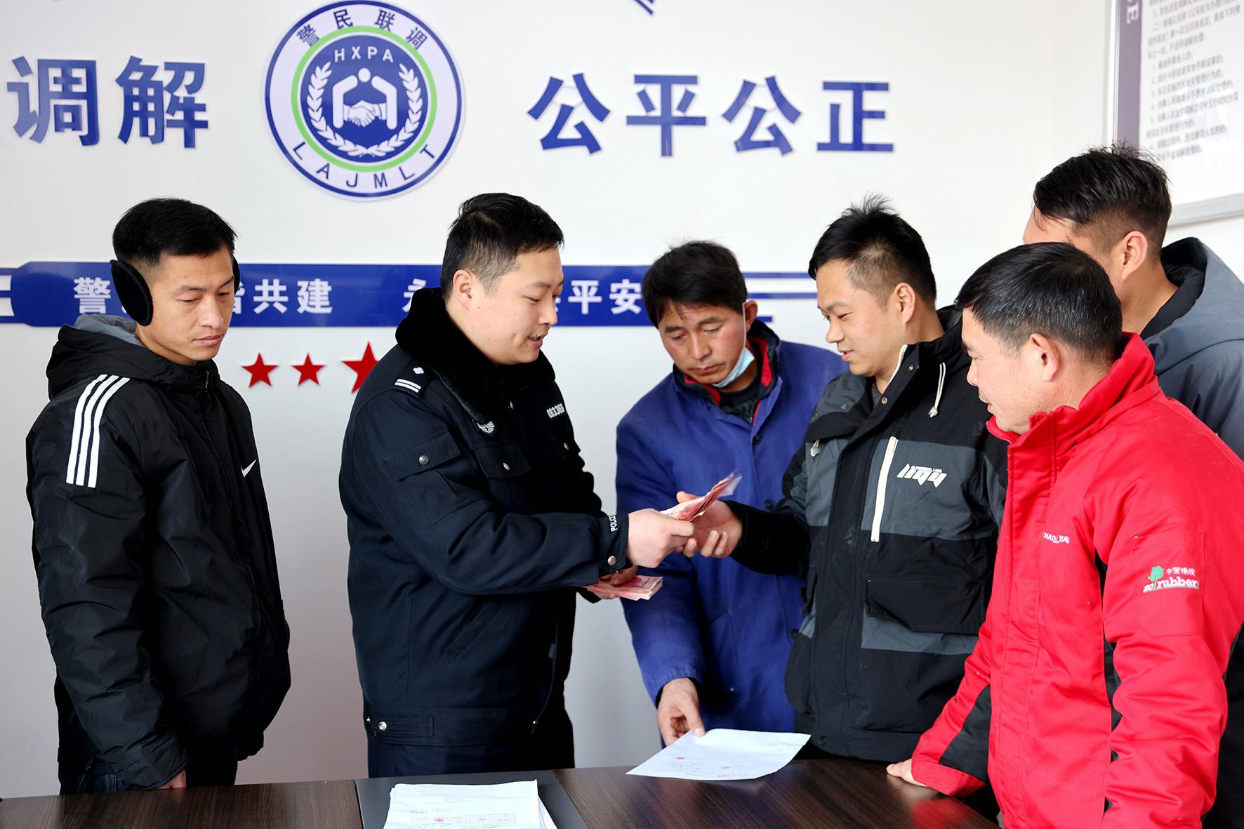 近日,56名農(nóng)民工帶著笑容來到安徽省亳州市公安局高新區(qū)分局,領(lǐng)取某公司拖欠他們的工資。自該欠薪案立案之日始,高新公安分局僅用不到一個(gè)月的時(shí)間將某公司拖欠的386180元工資全部發(fā)到農(nóng)民工手中,讓農(nóng)民工安“薪”過年。