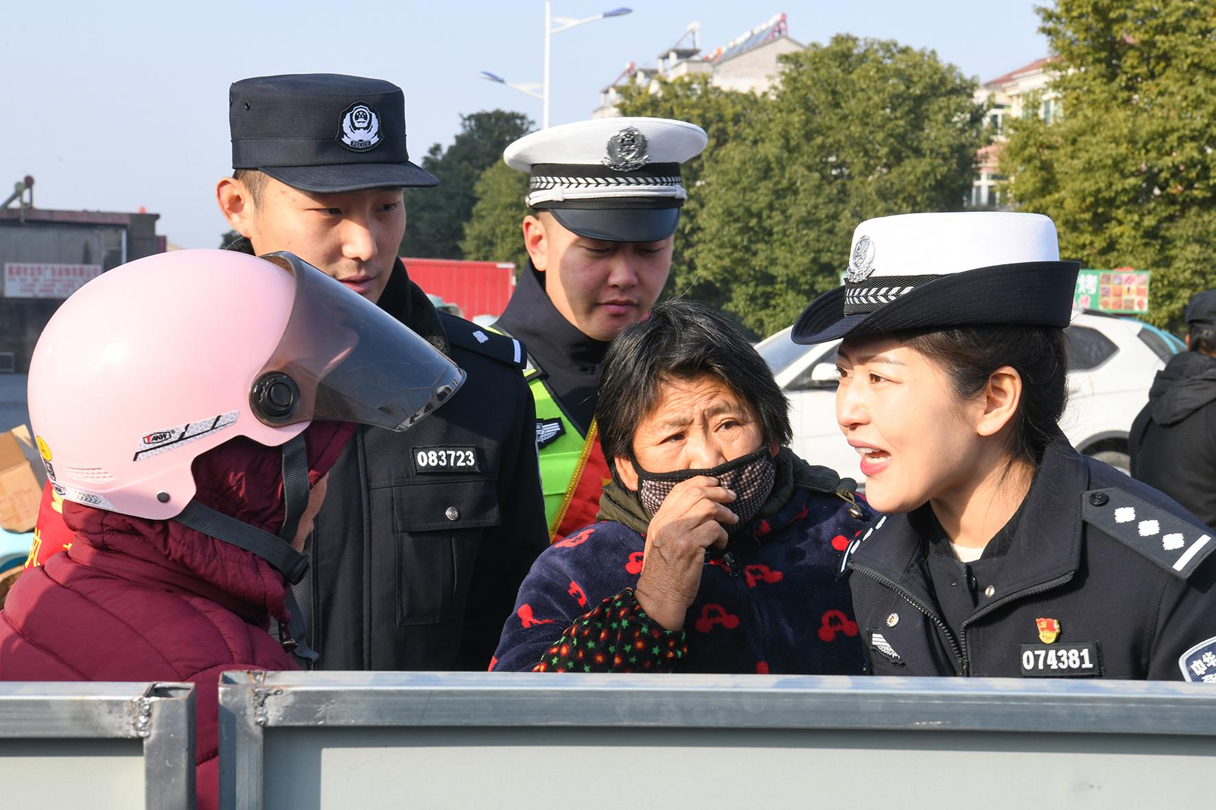 2月6日,安徽省馬鞍山市含山縣公安局民警走進(jìn)清溪中心廣場開展“一盔一帶”交通安全宣傳活動。
