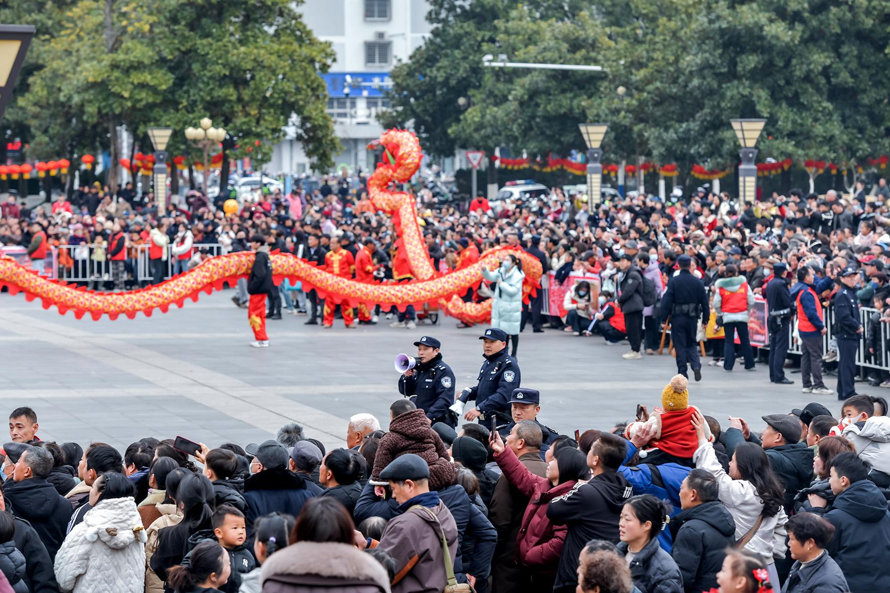 2月11日,安徽省涇縣舉辦“2025鬧元宵·舞龍巡游”活動。為保障活動安全有序進(jìn)行,涇縣公安局提前謀劃、統(tǒng)籌部署,抽調(diào)200余名警力維護(hù)活動秩序。