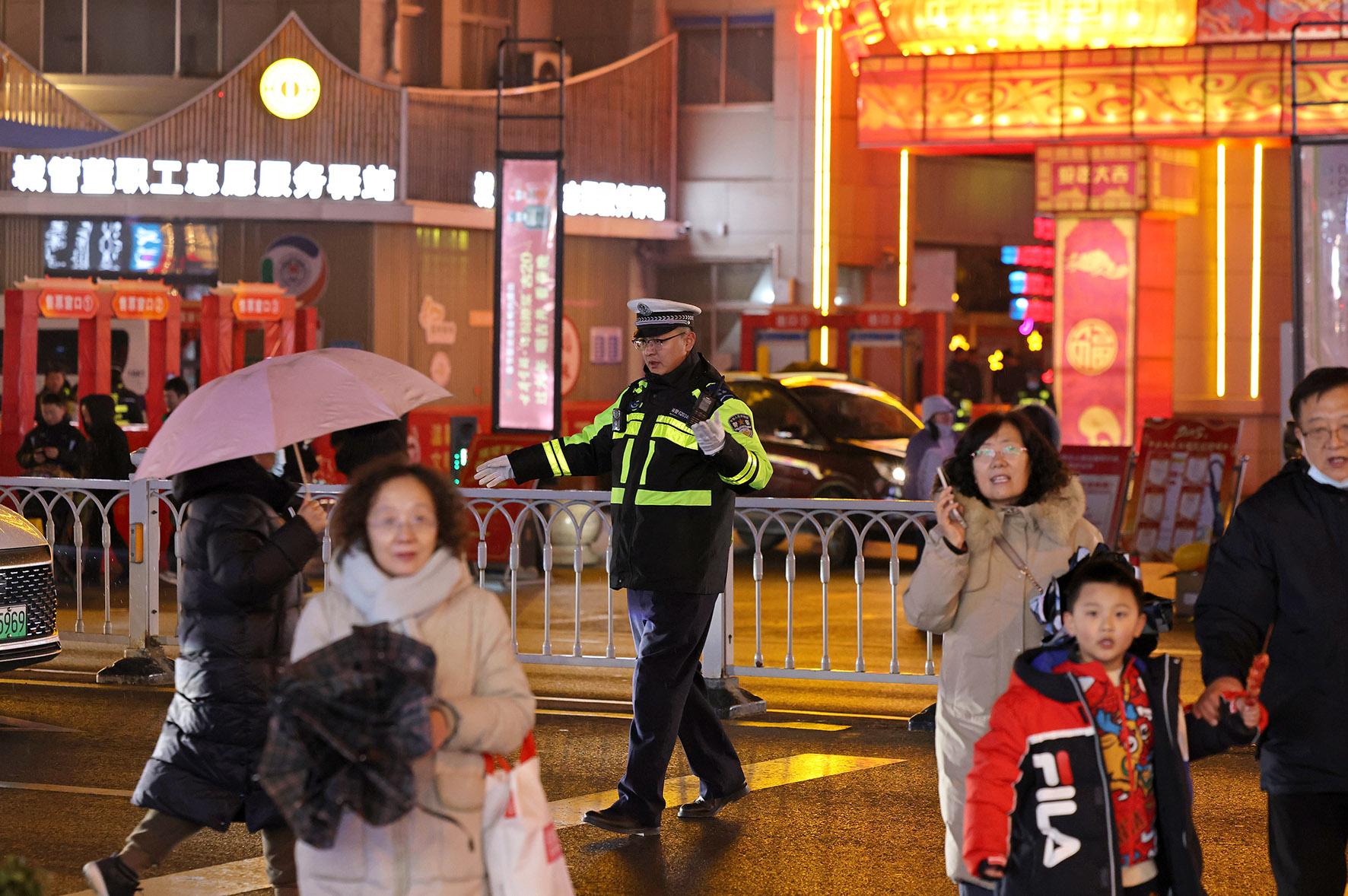 2月11日,山東省棗莊市公安局市中分局交通警察大隊組織民輔警在花燈會的主干道重點(diǎn)路段、路口設(shè)置臨時執(zhí)勤點(diǎn),保障道路安全暢通和賞燈游玩的群眾出行安全。