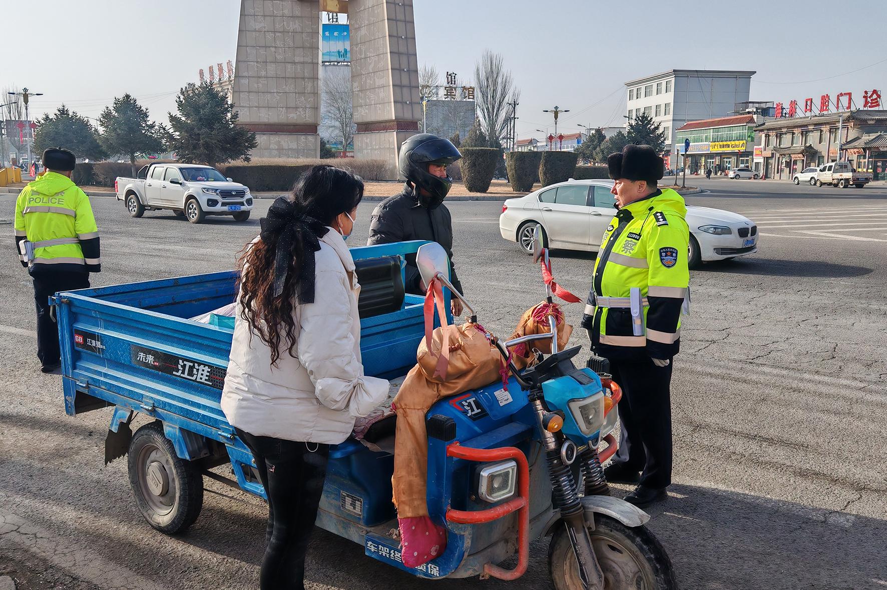 3月9日,內(nèi)蒙古巴彥淖爾市公安局交管支隊(duì)烏拉特前旗大隊(duì)執(zhí)勤民輔警對(duì)存在違法行為的駕駛員進(jìn)行現(xiàn)場糾“違”。