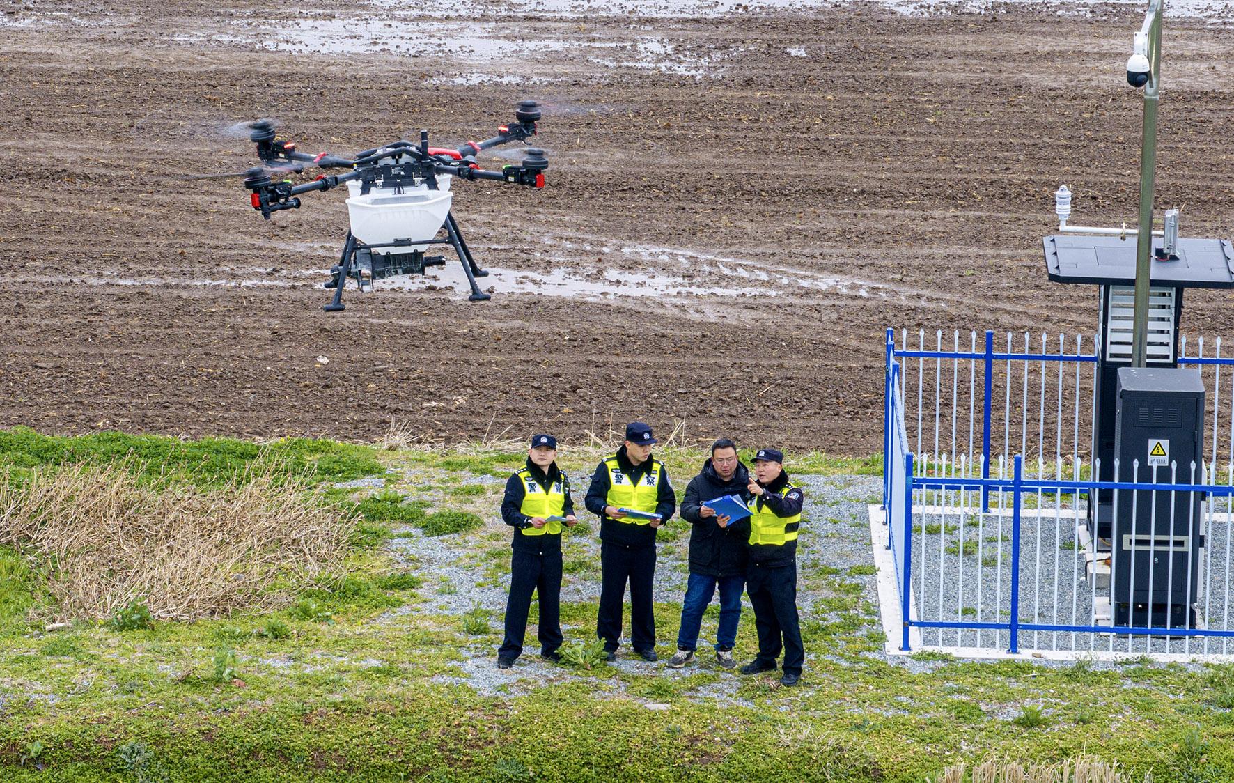 3月11日,上海市公安局崇明分局長江派出所民警來到轄區(qū)光明農(nóng)場,對大型農(nóng)用無人機開展安全規(guī)范管理和檢查,全面筑牢“低空經(jīng)濟”安全屏障。