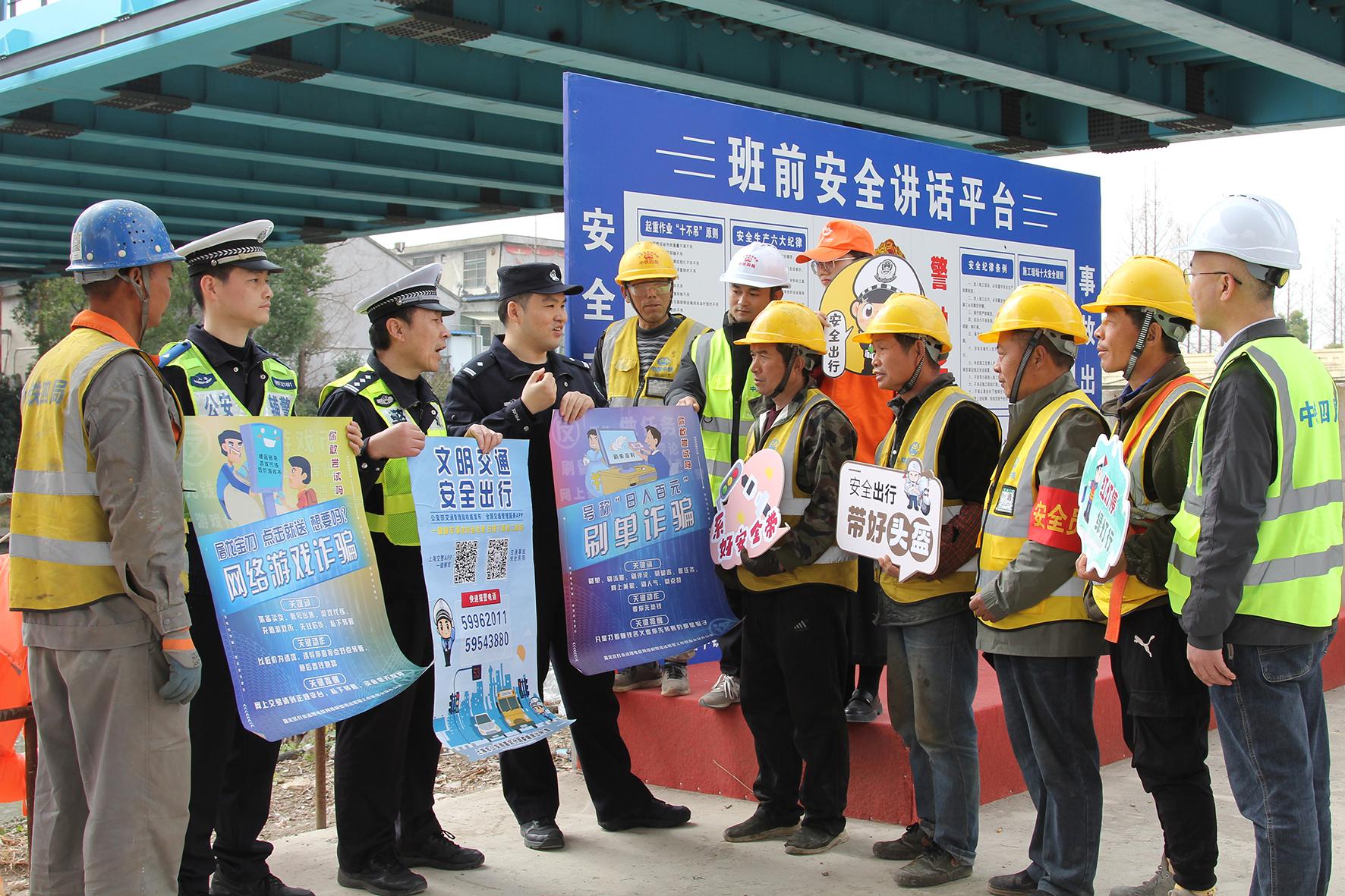 3月11日,上海市公安局嘉定分局交警支隊(duì)、徐行派出所民輔警會(huì)同平安志愿者走進(jìn)滬渝蓉鐵路滬寧段二標(biāo)二分部建設(shè)工地,向務(wù)工人員開展交通安全、人口信息自主申報(bào)、反詐騙等知識(shí)宣講。
