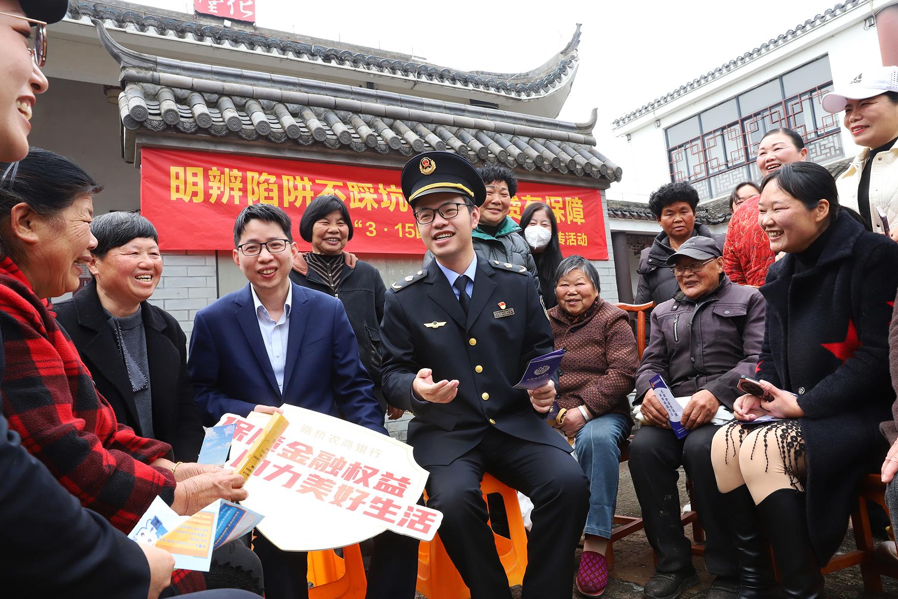 3月11日,浙江省臺州市路橋區(qū)金清鎮(zhèn)市場監(jiān)督管理所工作人員在高升村開展消費維權(quán)和老年人防詐騙宣傳。