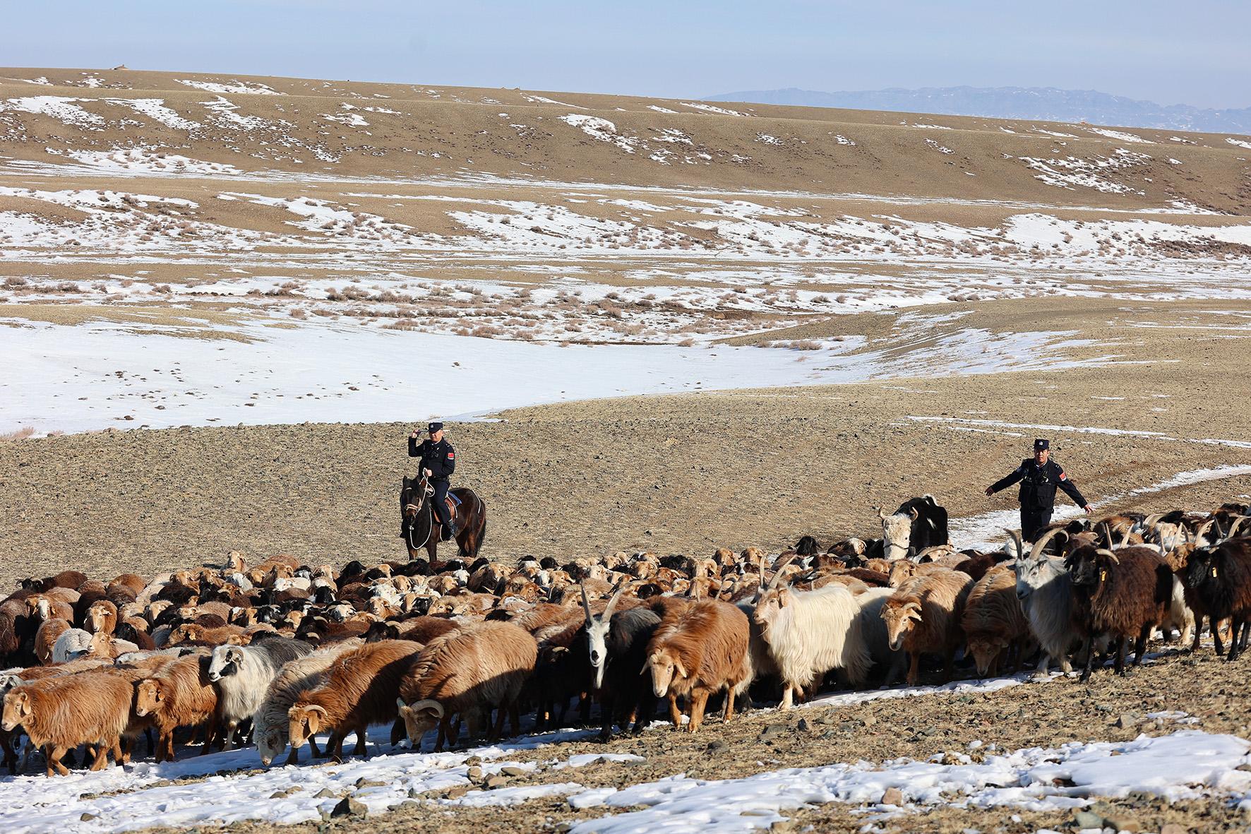 圖為3月18日,民警幫助牧民進(jìn)行轉(zhuǎn)場。