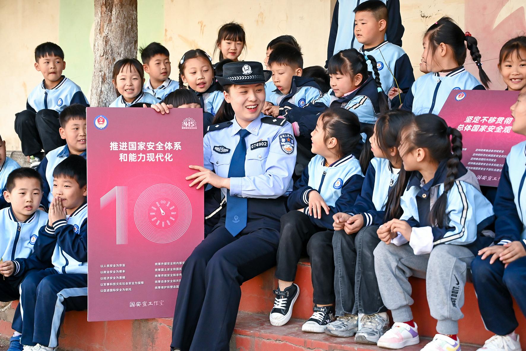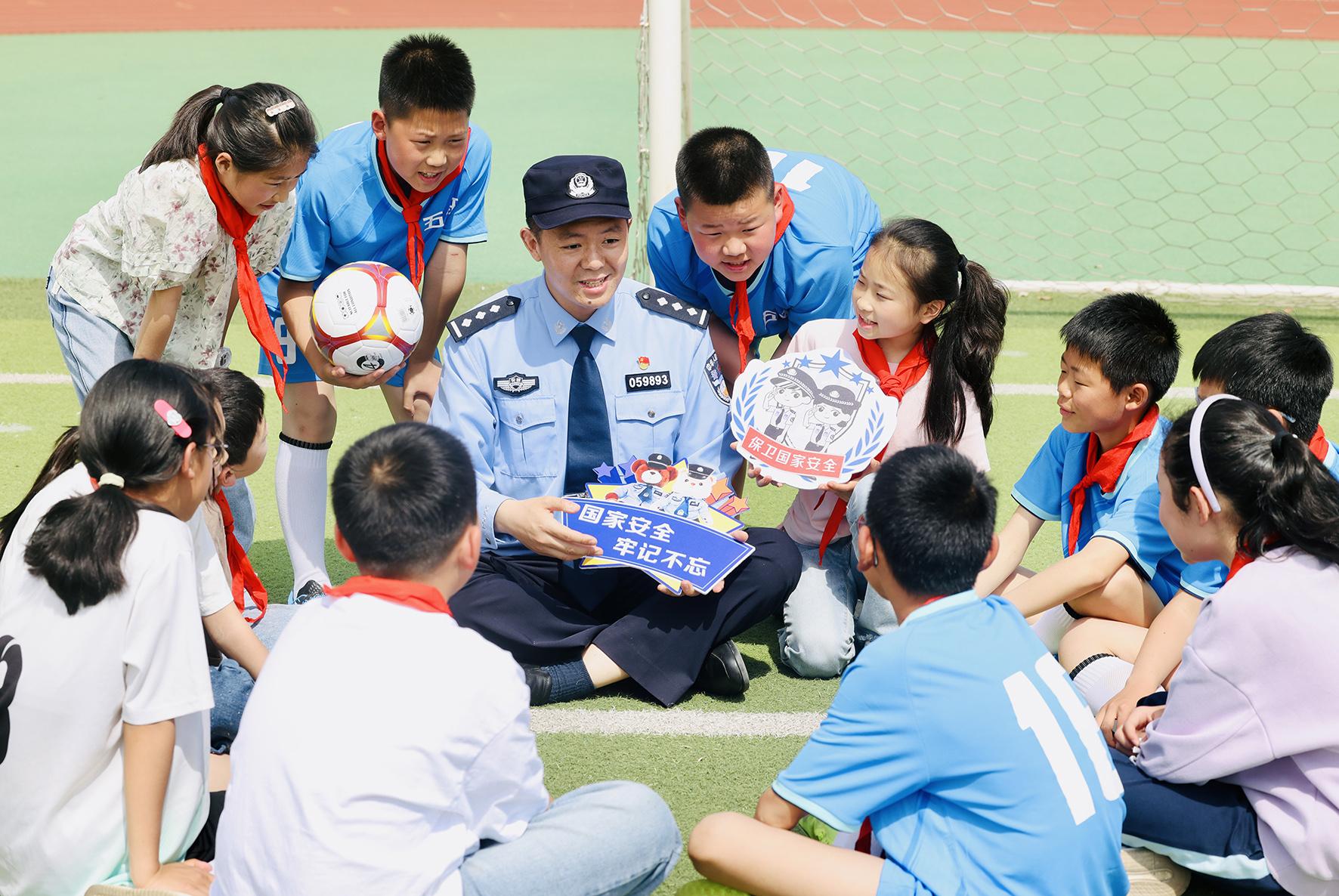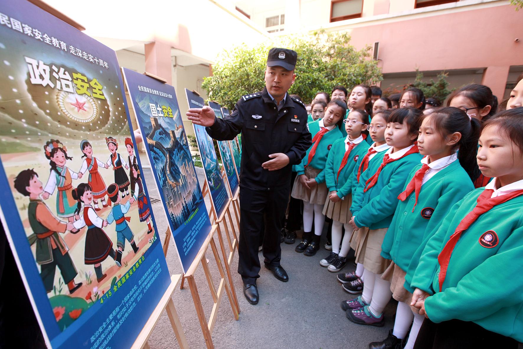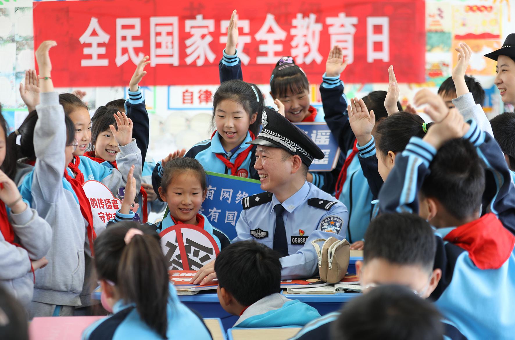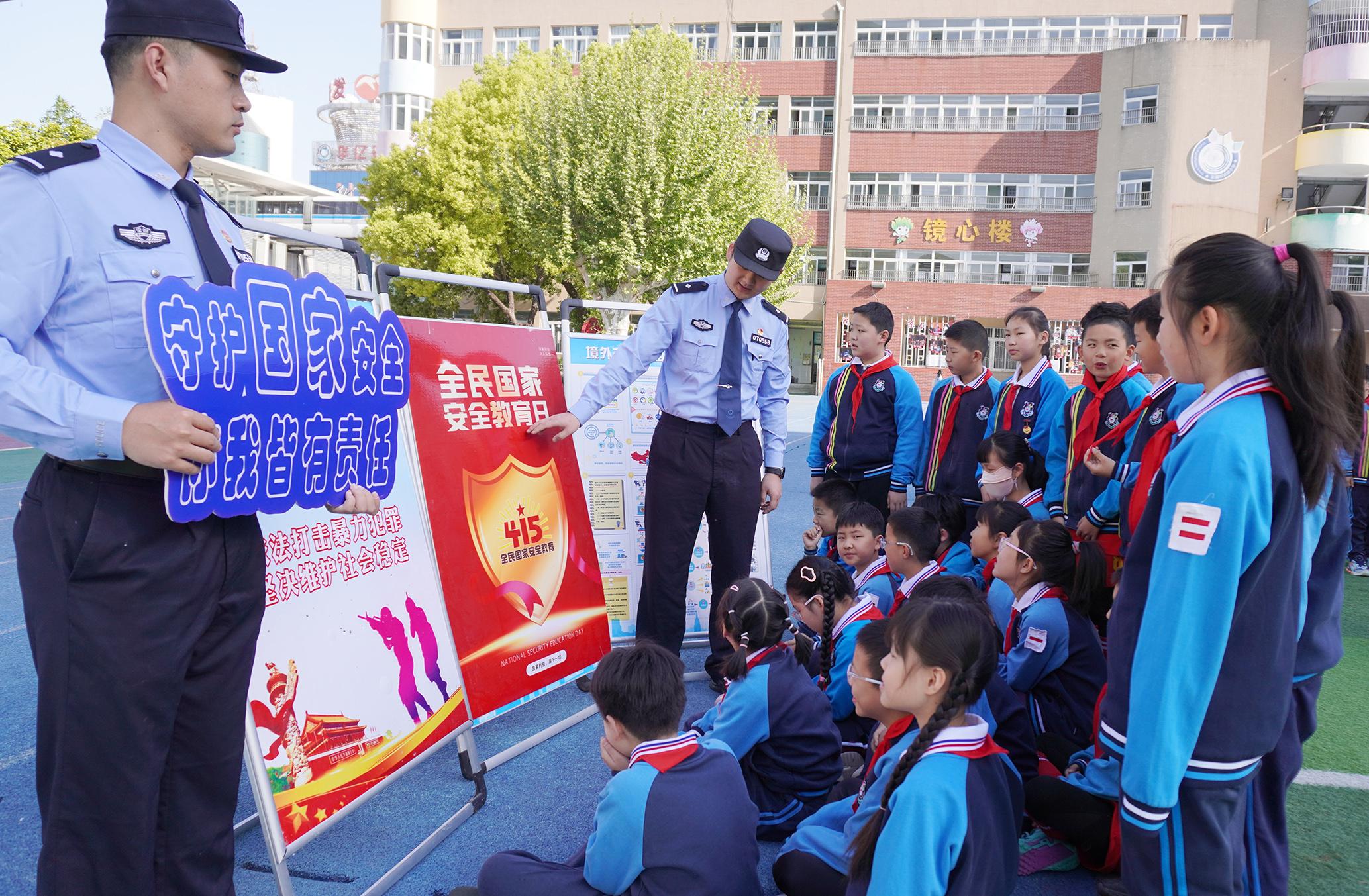 4月14日,山東省棗莊市公安局臺(tái)兒莊分局民警走進(jìn)明遠(yuǎn)實(shí)驗(yàn)小學(xué)開展全民國(guó)家安全教育日進(jìn)校園活動(dòng)。