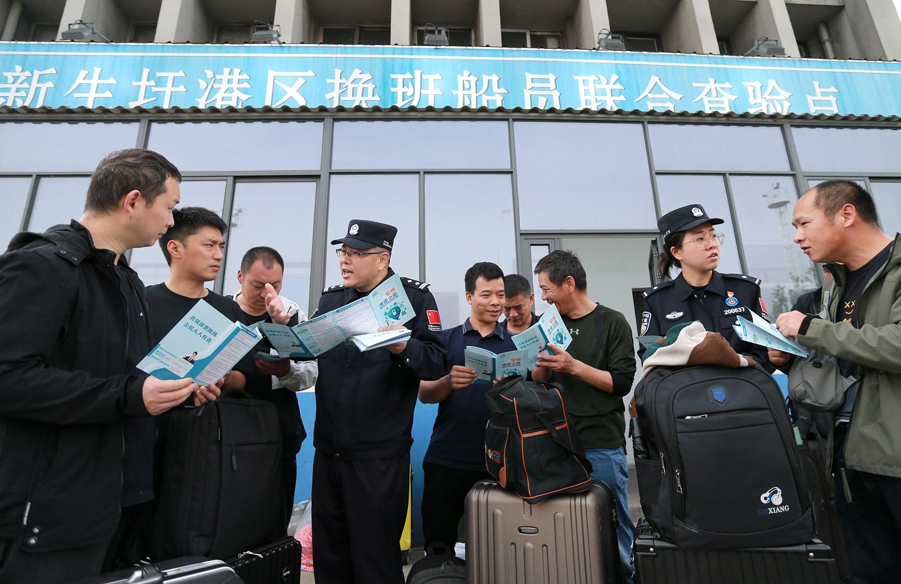 4月14日,長(zhǎng)江航運(yùn)公安局南通分局通州派出所聯(lián)合南通出入境邊防檢查站執(zhí)勤三隊(duì)到轄區(qū)重工企業(yè)開展“全民國(guó)家安全教育 走深走實(shí)十周年”活動(dòng)。
