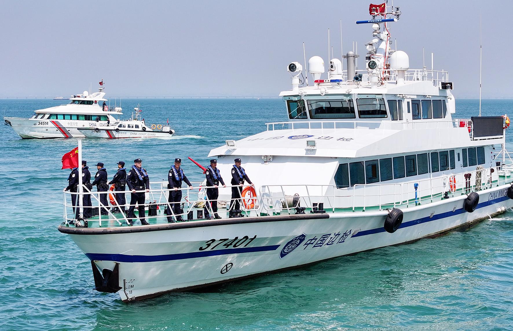4月15日,山東青島開展“國(guó)門利劍2025”首次海陸空聯(lián)合執(zhí)法行動(dòng)。黃島邊檢站聯(lián)合海事、海警、港航公安等涉海部門,對(duì)青島港及周邊海域?qū)嵤┝Ⅲw巡查。
