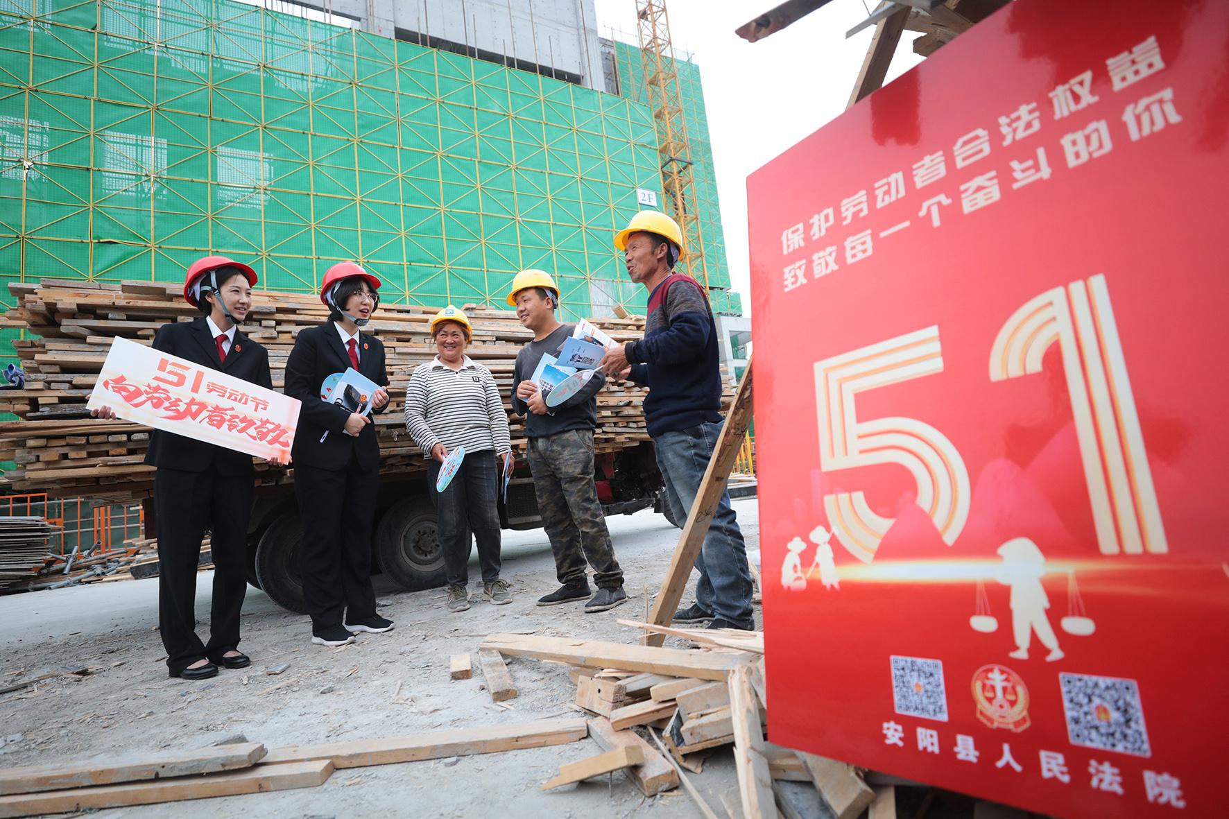 4月21日,河南省安陽(yáng)縣人民法院組織干警深入轄區(qū)建筑工地開展以“保護(hù)勞動(dòng)者合法權(quán)益 致敬每一個(gè)奮斗的你”為主題的法治宣傳活動(dòng)。