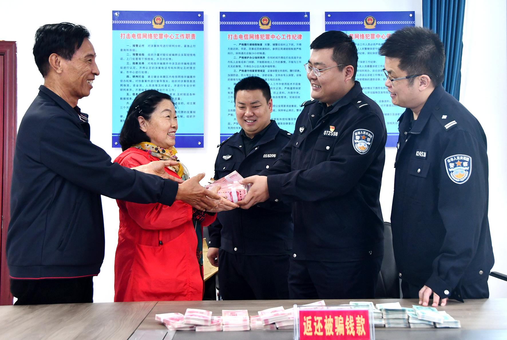 4月22日,河北省邯鄲市永年區(qū)公安局刑警大隊機(jī)動中隊舉行返贓儀式,將近日破獲的一起電信網(wǎng)絡(luò)詐騙案追回的30萬元涉案錢款返還給群眾。
