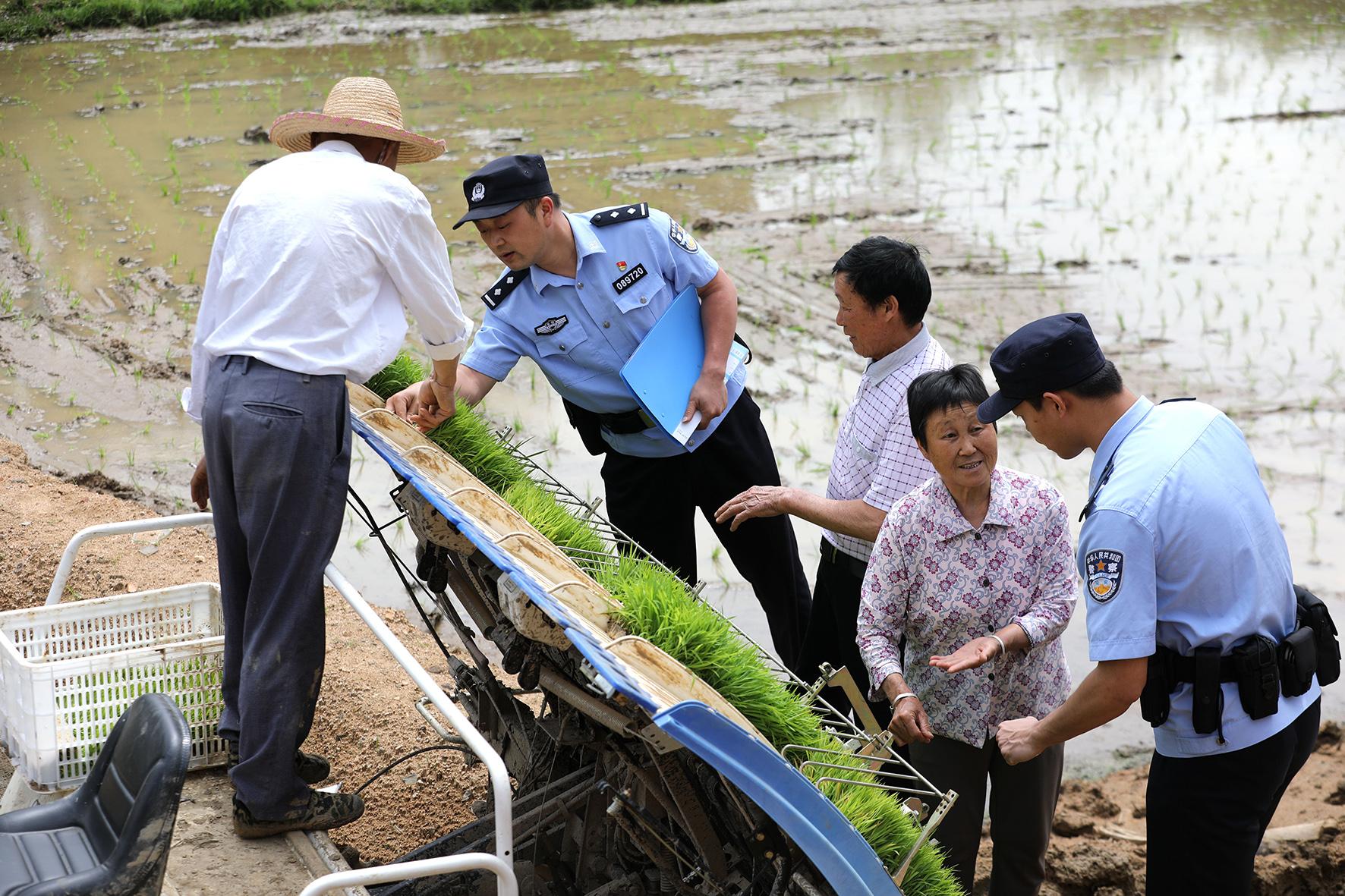 5月6日,安徽省舒城縣公安局高峰派出所組織民警輔警走進田間地頭,開展巡邏防范、安全宣傳、矛盾化解、幫扶解困等工作。